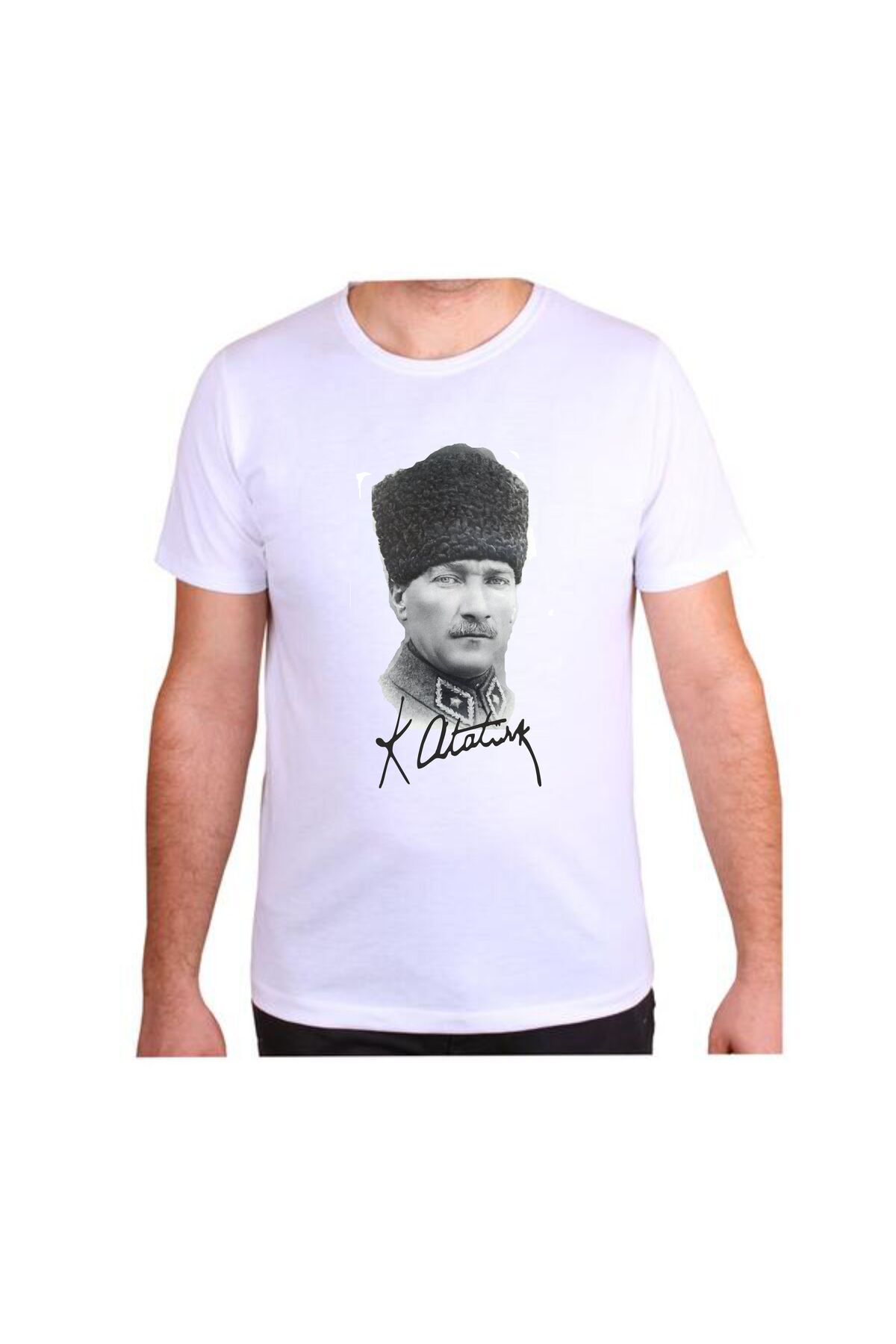 %100 Pamuklu Siyah Atatürk İmza Baskılı Beyaz Kısa Kollu Tişört %100 Pamuklu Siyah Atatürk İmza Baskılı Beyaz Kısa Kollu Tişört CPTB18SBYZK1 3XL