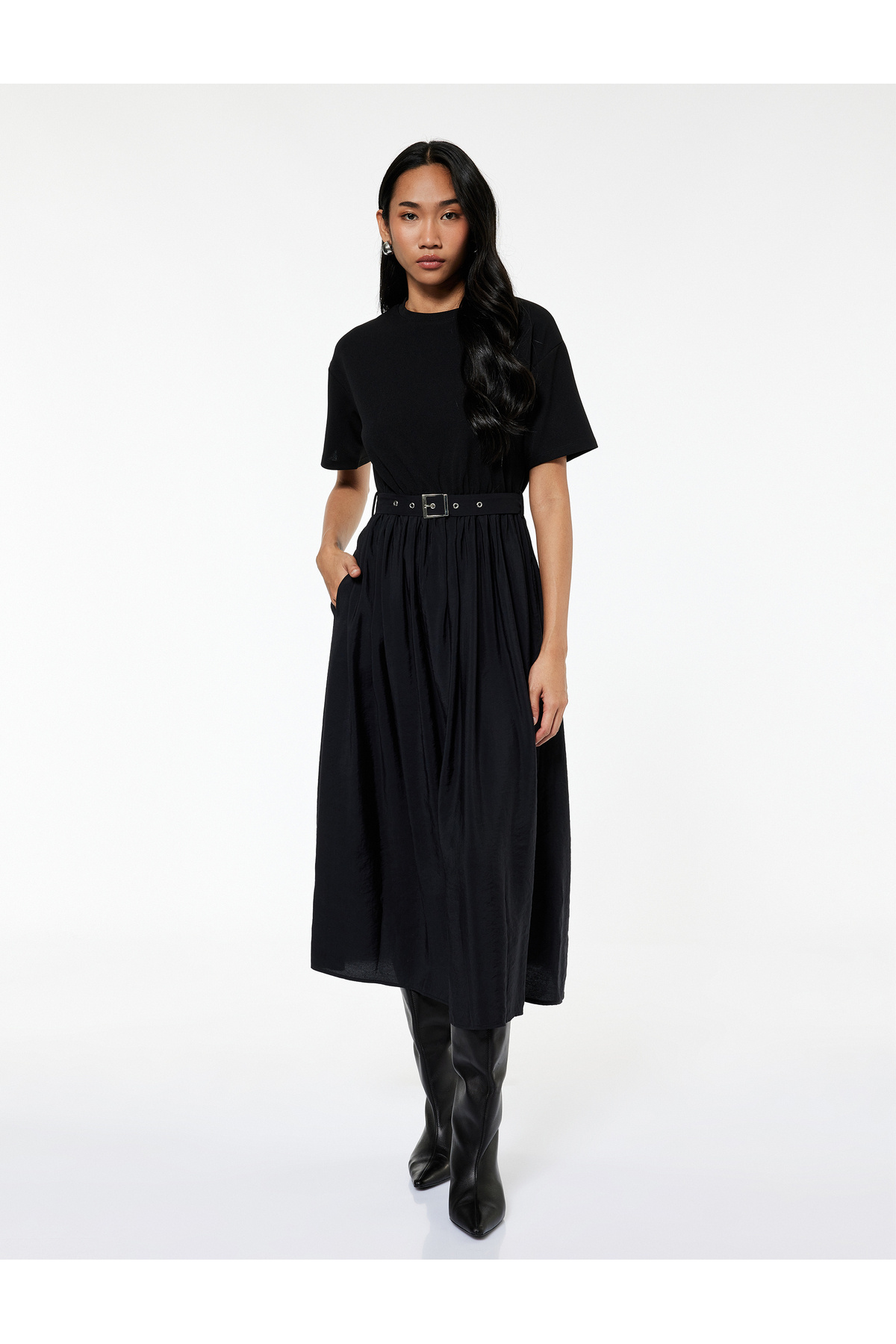 Uzun Gömlek Elbise Hakim Yaka Kemerli Düğmeli Kısa Kollu Uzun Gömlek Elbise Hakim Yaka Kemerli Düğmeli Kısa Kollu 4SAK80024UW 46