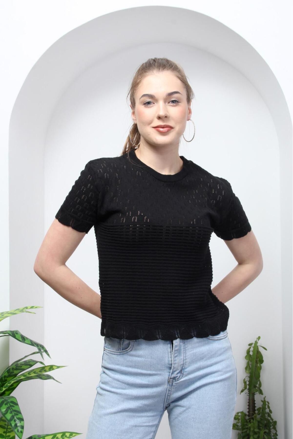 Dantel Detay Ajurlu Kısa Kol Bisiklet Yaka Triko Bluz Dantel Detay Ajurlu Kısa Kol Bisiklet Yaka Triko Bluz 541864198418464886 Standart
