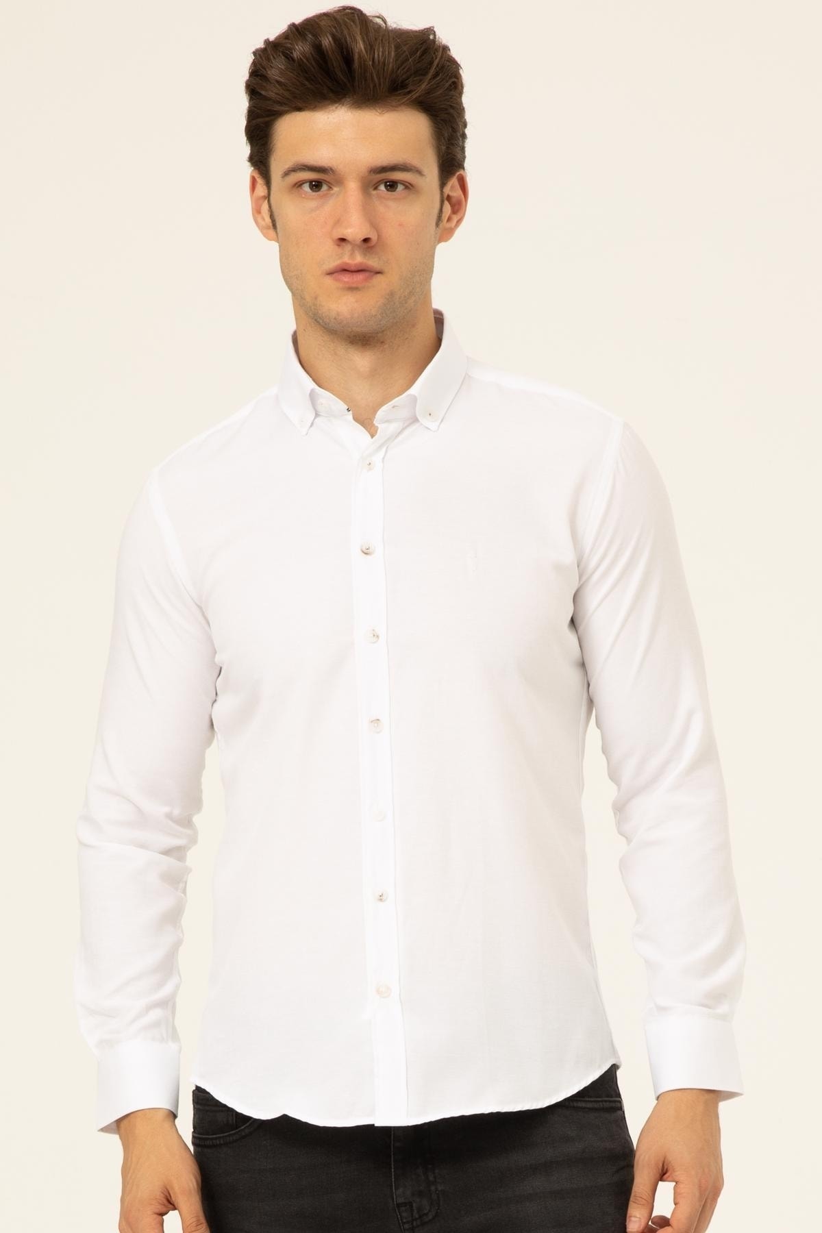 Manşetli Slim Kalıp Armürlü Gömlek Manşetli Slim Kalıp Armürlü Gömlek GM2025500454 XL