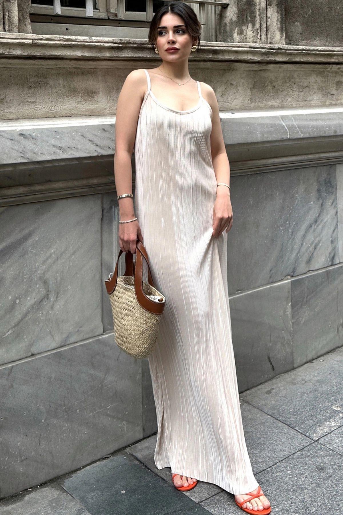 Kadın Fuşya İnce Askılı, V Yaka, Yırtmaç Detaylı, Uzun Pliseli Elbise Kadın Fuşya İnce Askılı, V Yaka, Yırtmaç Detaylı, Uzun Pliseli Elbise NY3609 42