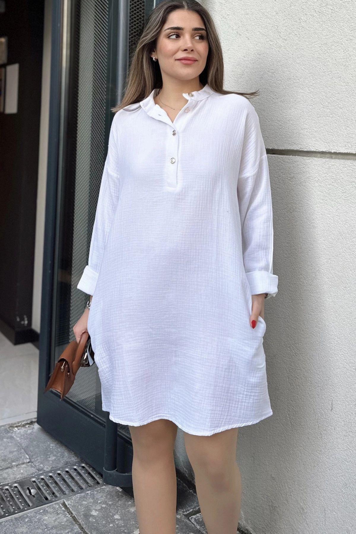 Kadın Siyah Hakim Yaka, Katlamalı Geniş Kol, Midi & Oversize Kesim, Salaş Müslin Elbise Kadın Siyah Hakim Yaka, Katlamalı Geniş Kol, Midi & Oversize Kesim, Salaş Müslin Elbise NY3520 42