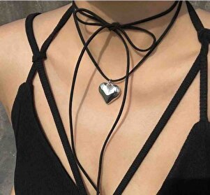 Vintage Big Heart Siyah İpli Silver Kolye Vintage Big Heart Siyah İpli Silver Kolye KDK1558 تک سایز