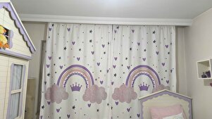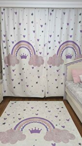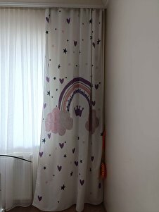 Gökkuşağı Kalpli Çift Kanatlı Çocuk Odası Fon Perde Gökkuşağı Kalpli Çift Kanatlı Çocuk Odası Fon Perde D28-P 140 x 270