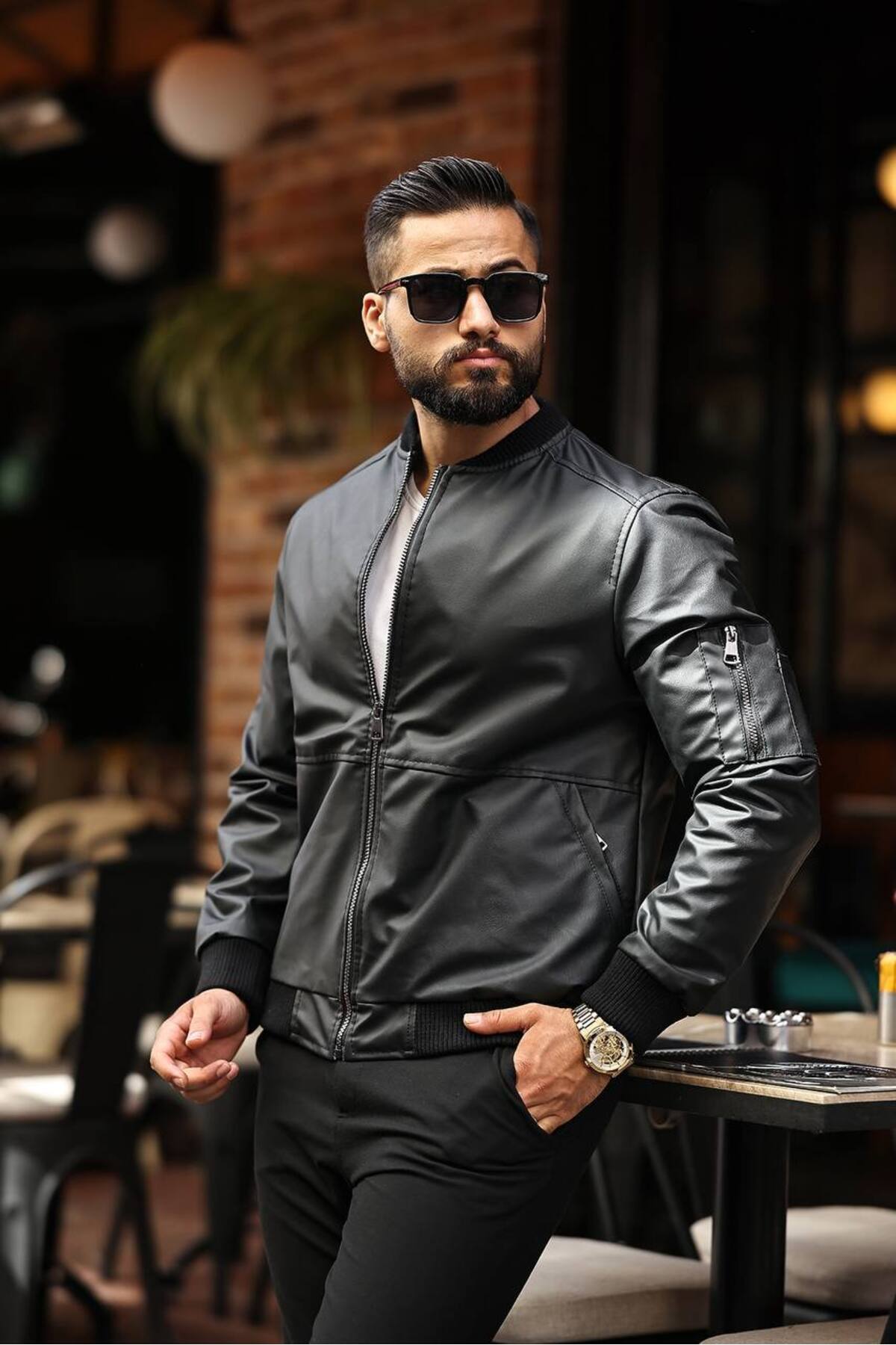 Yeni Sezon Oversize Cep Detaylı Siyah Erkek Deri Ceket Yeni Sezon Oversize Cep Detaylı Siyah Erkek Deri Ceket OversizeAAA1 2XL