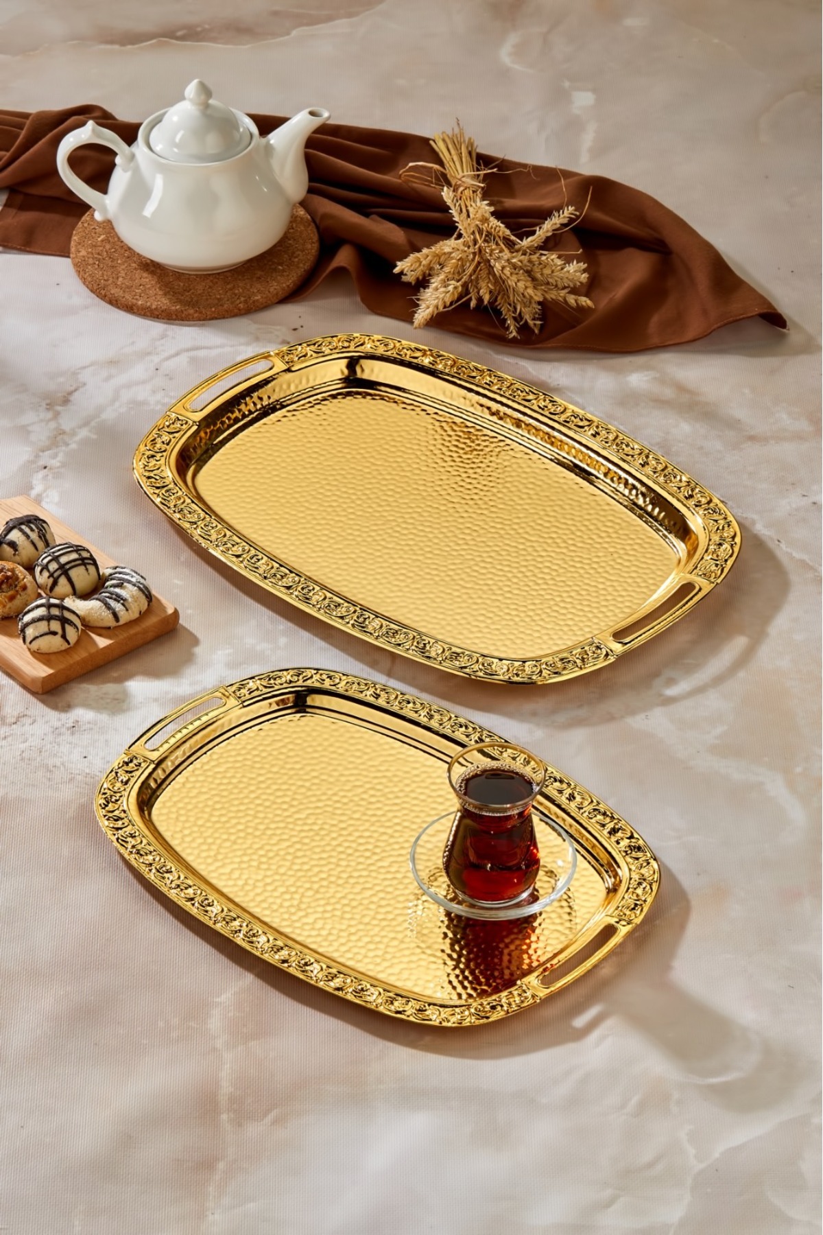 Dikdörtgen 2'Li Paslanmaz Çelik Metal Tepsi Seti Dikdörtgen 2'Li Paslanmaz Çelik Metal Tepsi Seti TEPSİ تک سایز
