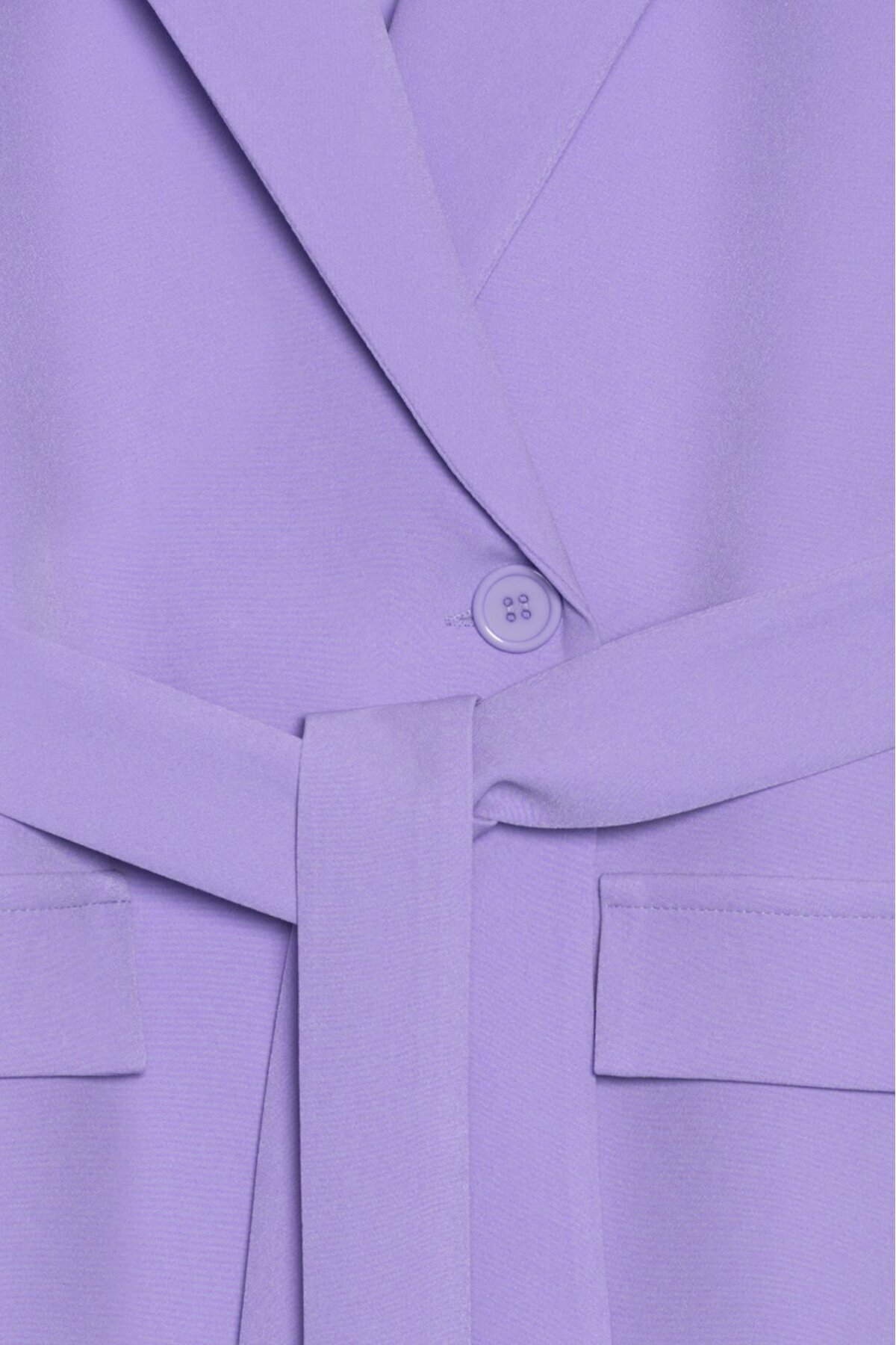 Lila Kadın Tek Düğmeli Dokuma Kruvaze Blazer Ceket - Kuşaklı Lila Kadın Tek Düğmeli Dokuma Kruvaze Blazer Ceket - Kuşaklı SD/MYAZ23CK0215 46