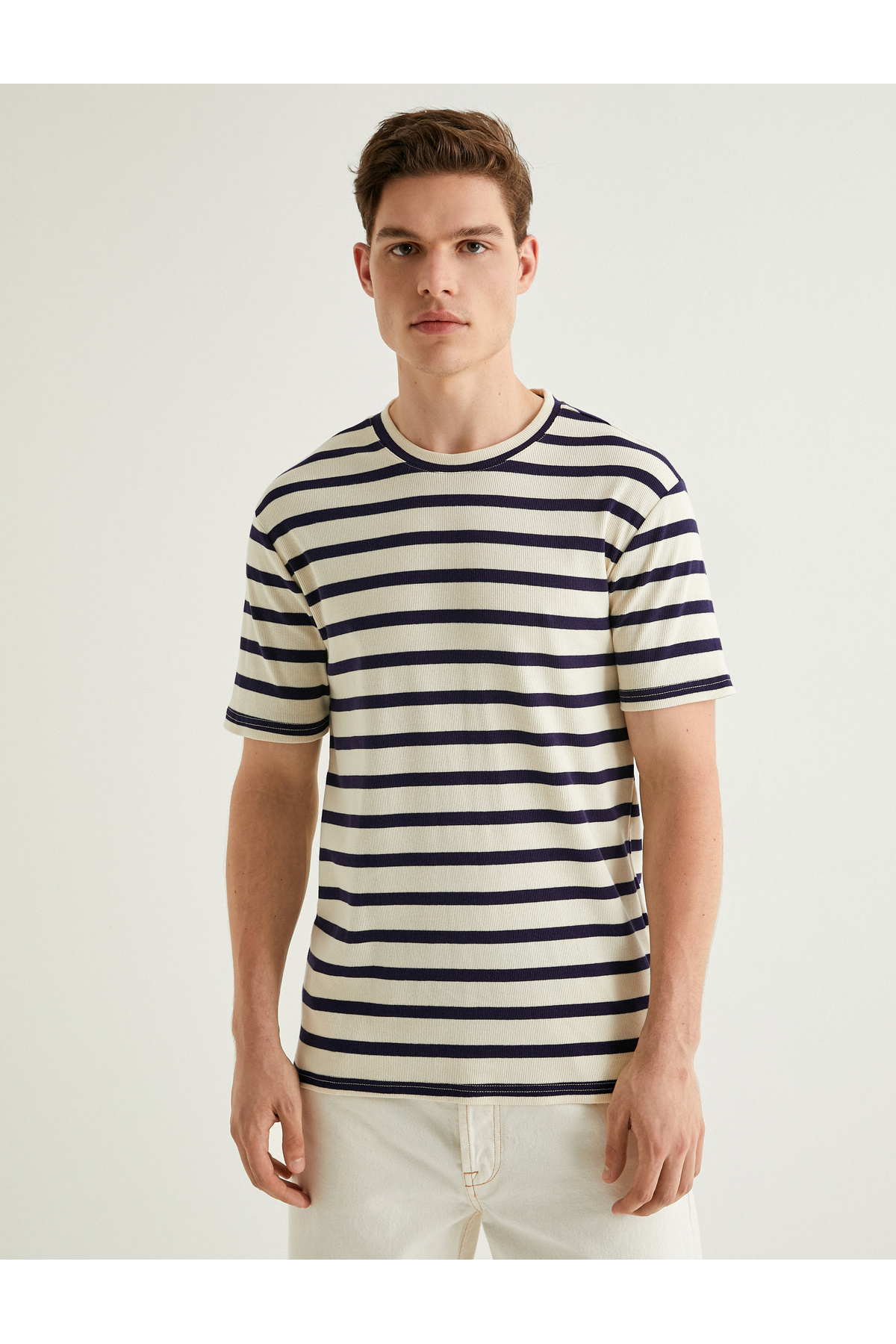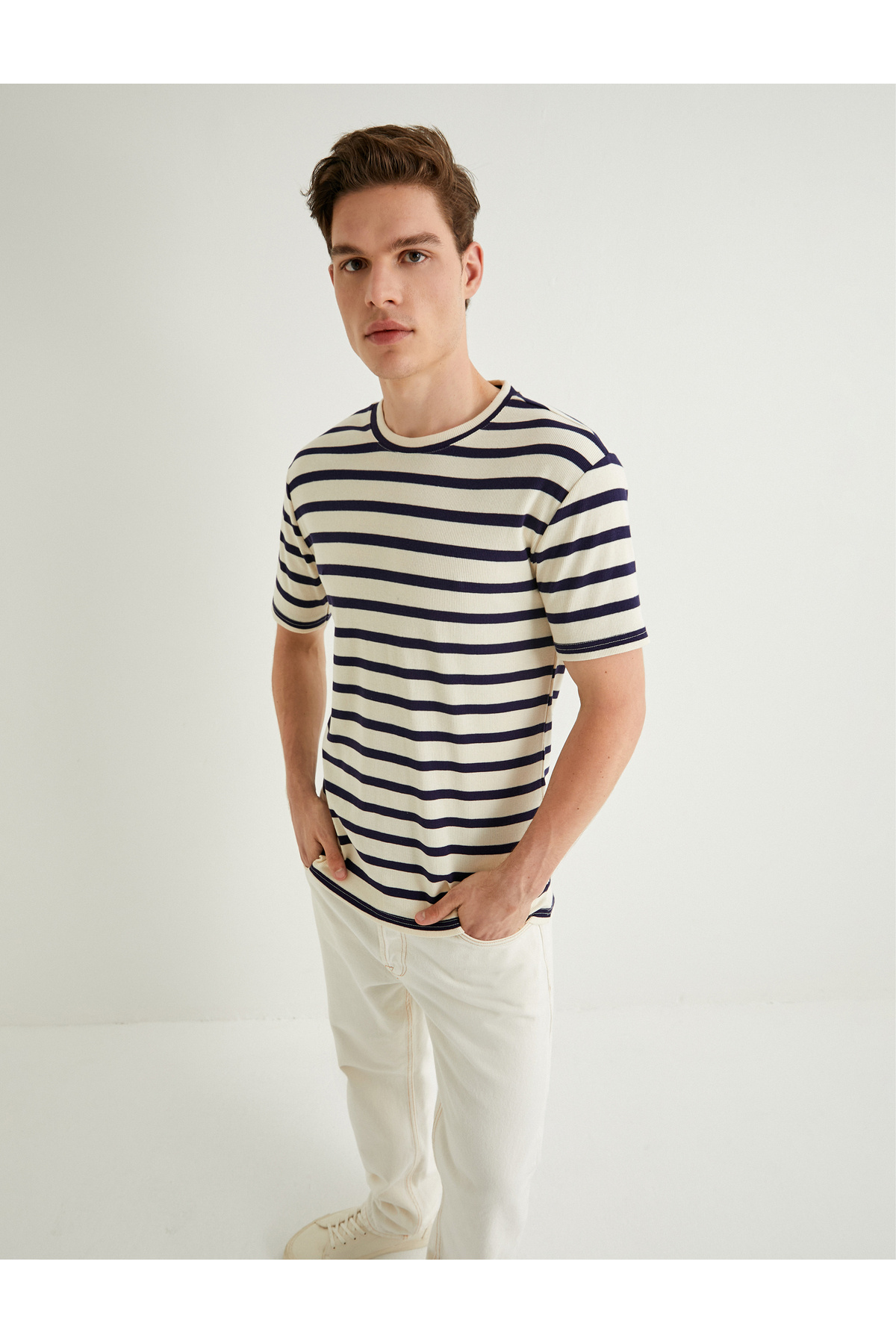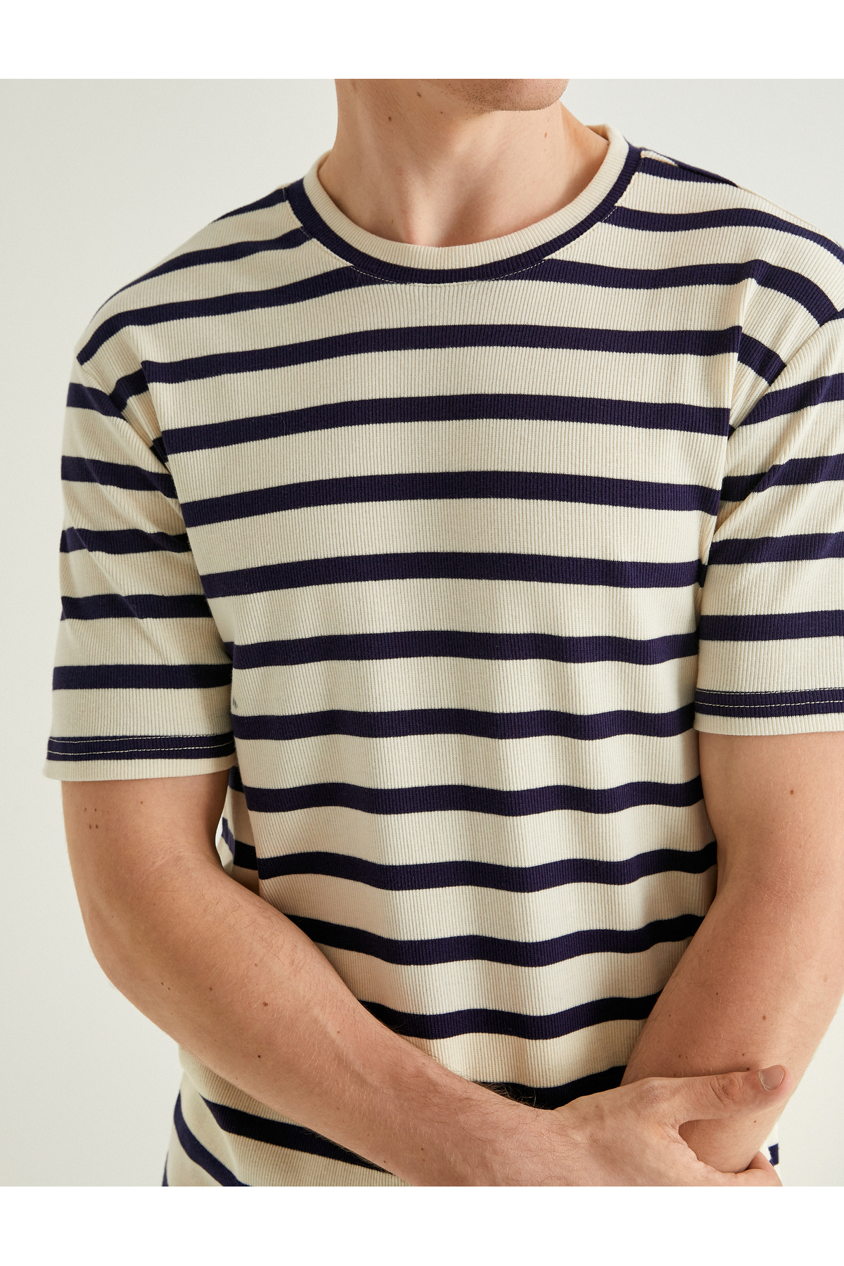 Basic Tişört Slim Fit Çizgili Bisiklet Yaka Kısa Kollu Basic Tişört Slim Fit Çizgili Bisiklet Yaka Kısa Kollu 4SAM10843HK 3XL