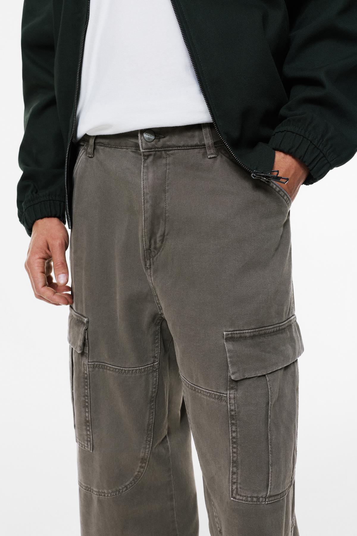 Kargo Cepli Gabardin Pantolon Yüksek Bel Düğmeli Kargo Cepli Gabardin Pantolon Yüksek Bel Düğmeli 4SAM40149HW 48
