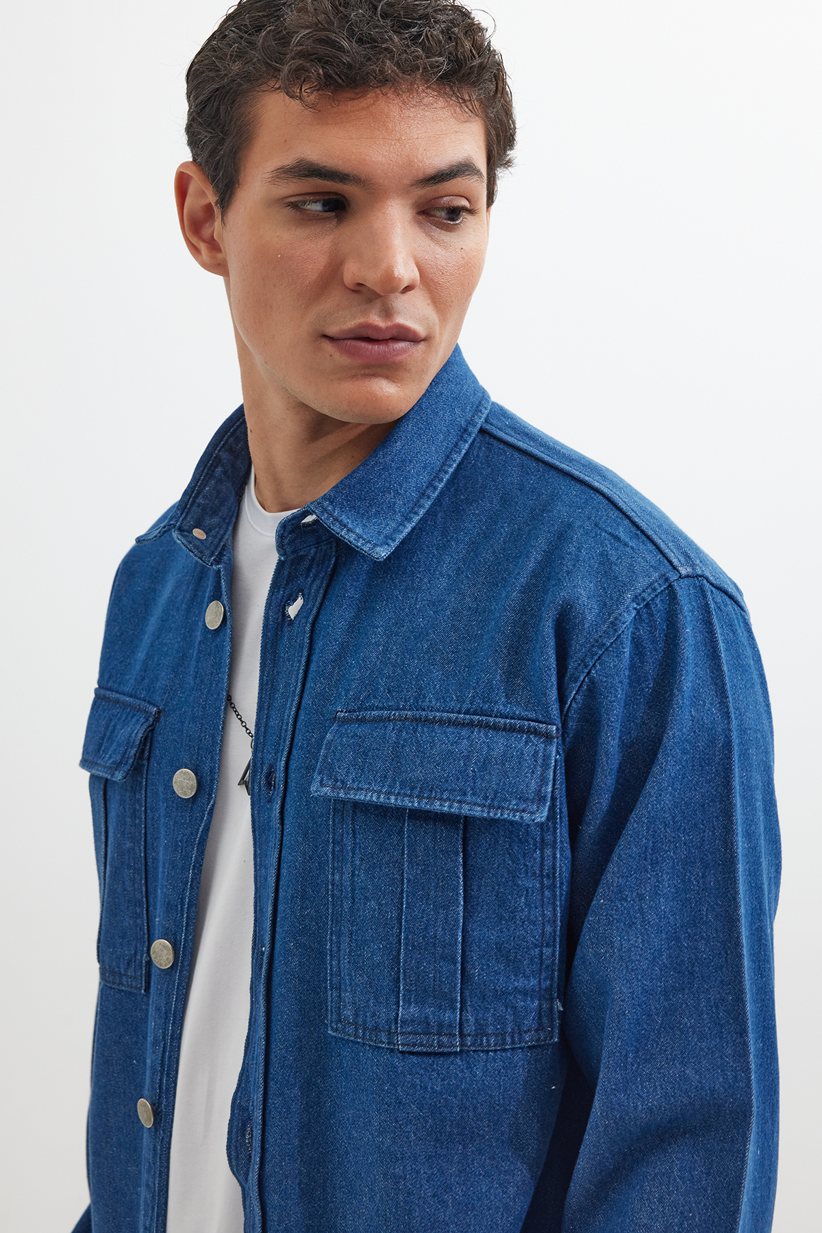 Yıkamalı Kot Gömlek Ceket Uzun Kollu Tek Cep Detaylı Klasik Yaka Pamuklu Yıkamalı Kot Gömlek Ceket Uzun Kollu Tek Cep Detaylı Klasik Yaka Pamuklu 4SAM50031ND XL