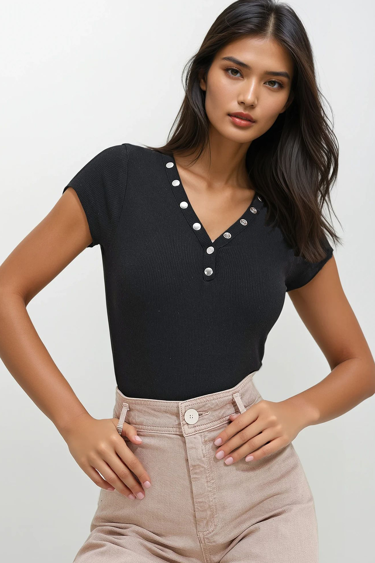 Kadın Siyah V Yaka Önü Çıtçıt Kapamalı Bluz ALC-X12274 Kadın Siyah V Yaka Önü Çıtçıt Kapamalı Bluz ALC-X12274 L