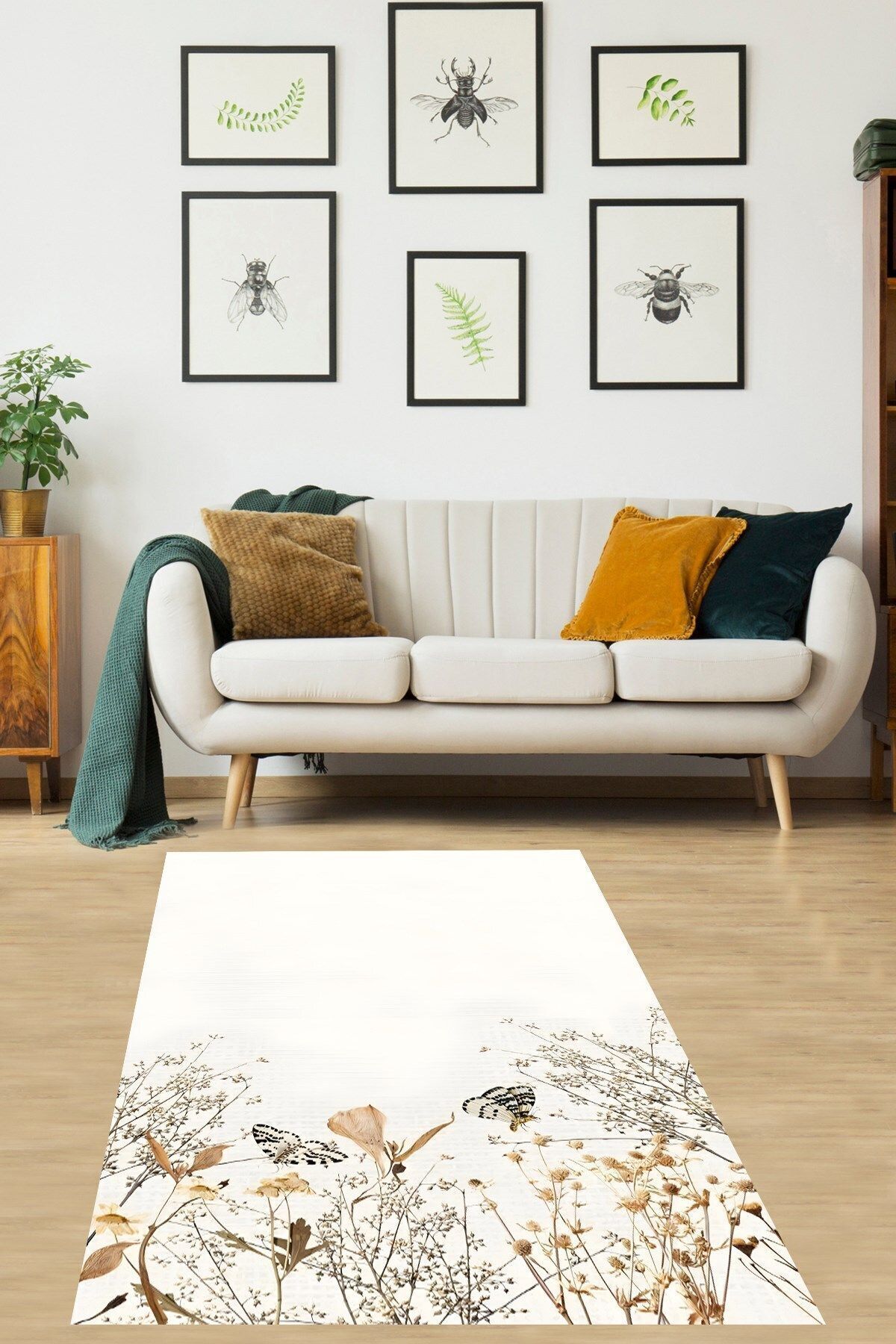 Beyaz Zemin Çiçek Bahçesi Kelebek Desenli Kaymaz Taban Leke Tutmaz Yazlık Ekonomik Salon Halısı Beyaz Zemin Çiçek Bahçesi Kelebek Desenli Kaymaz Taban Leke Tutmaz Yazlık Ekonomik Salon Halısı PNHS4 160 x 230