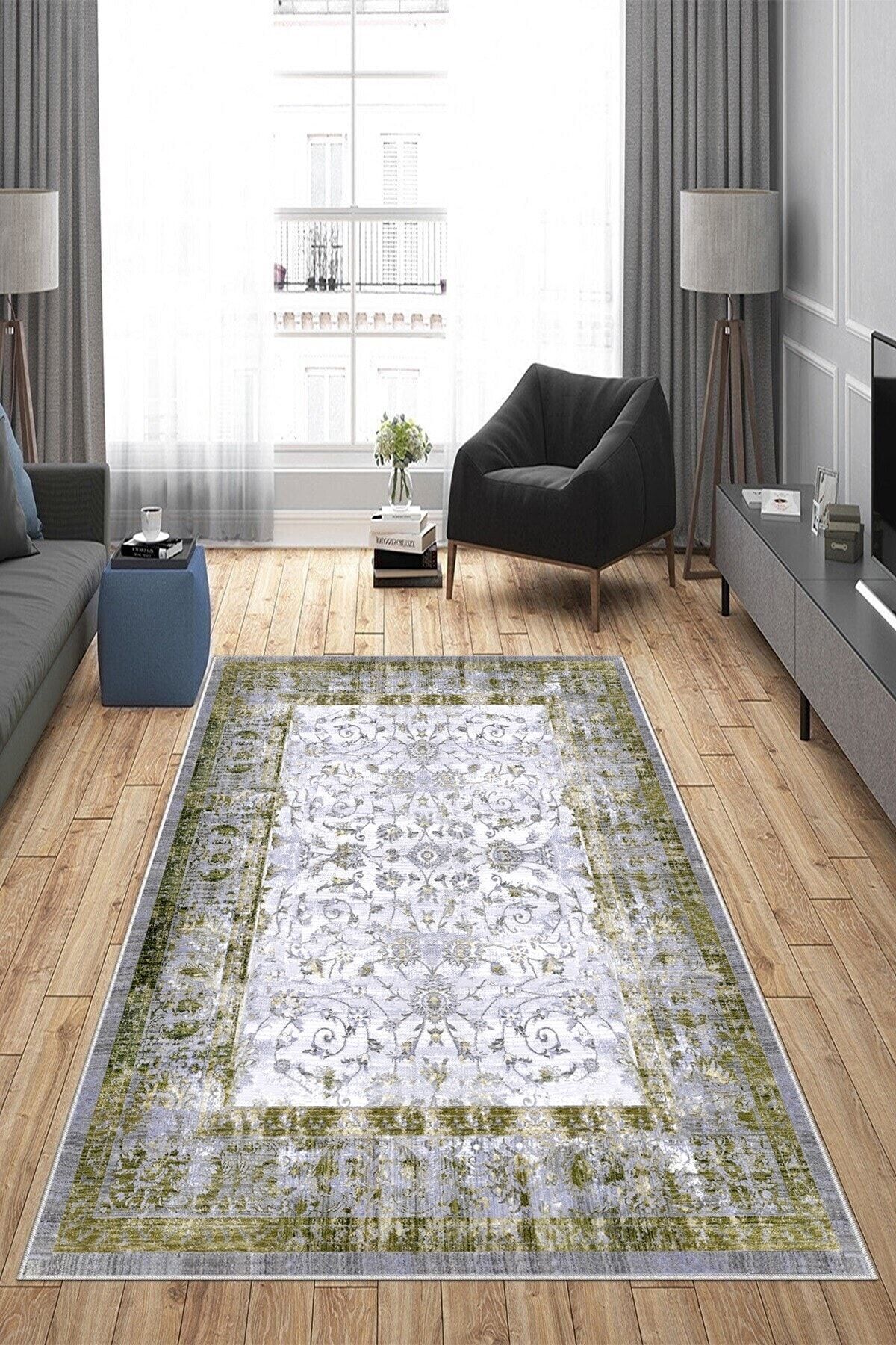 Yeşil Çerçeveli Çiçek Desenli Yıkanabilir Kaymaz Taban Leke Tutmaz Yazlık Ekonomik Salon Halısı Yeşil Çerçeveli Çiçek Desenli Yıkanabilir Kaymaz Taban Leke Tutmaz Yazlık Ekonomik Salon Halısı MRTMOD13 160 x 230