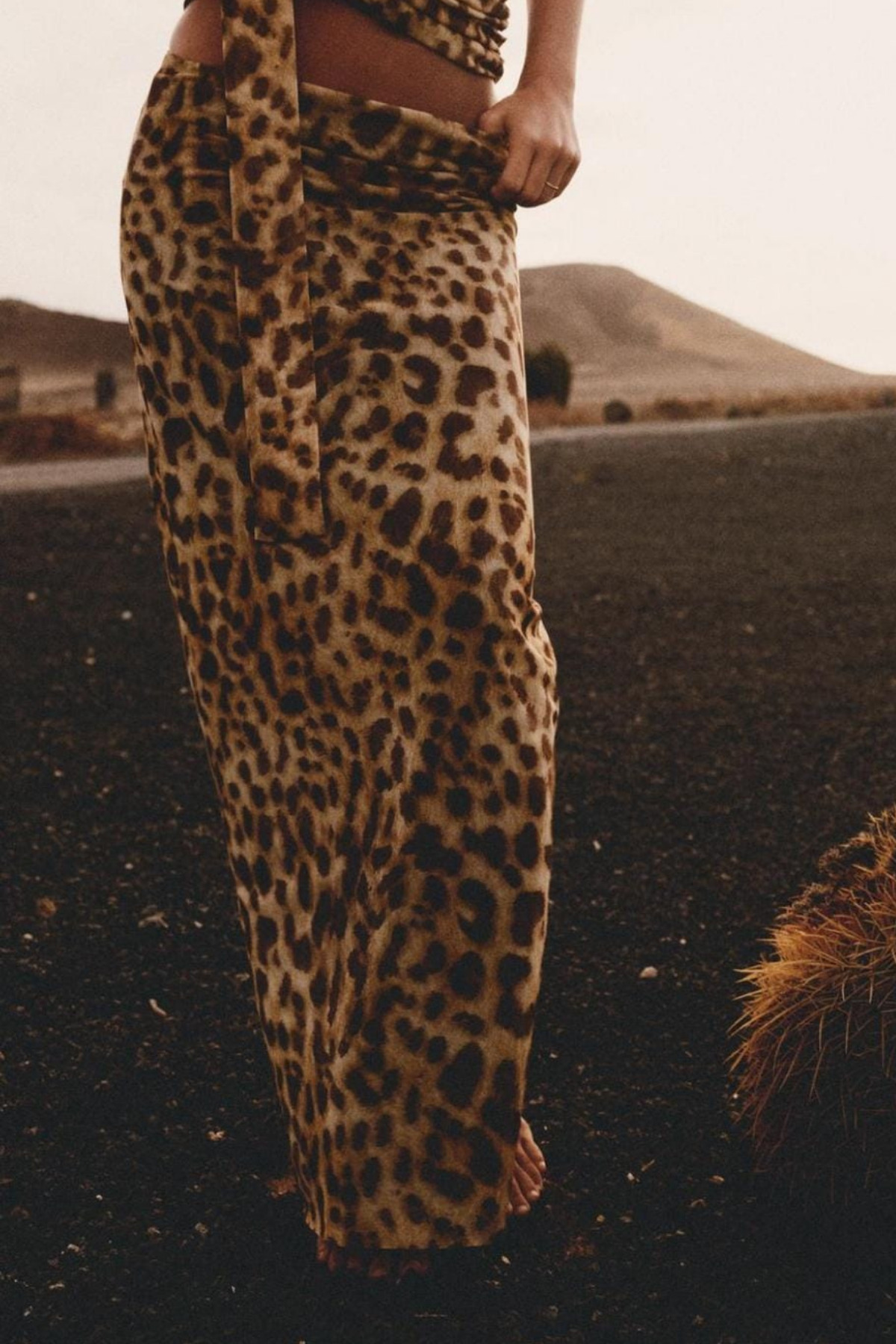 Kadın Camel Leopar Desenli Balon Etek Kadın Camel Leopar Desenli Balon Etek LBLN89 L