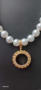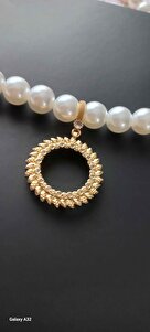 Yarımlı Altın Uyumlu 12mm Incili Kolye Yarımlı Altın Uyumlu 12mm Incili Kolye AUİK M