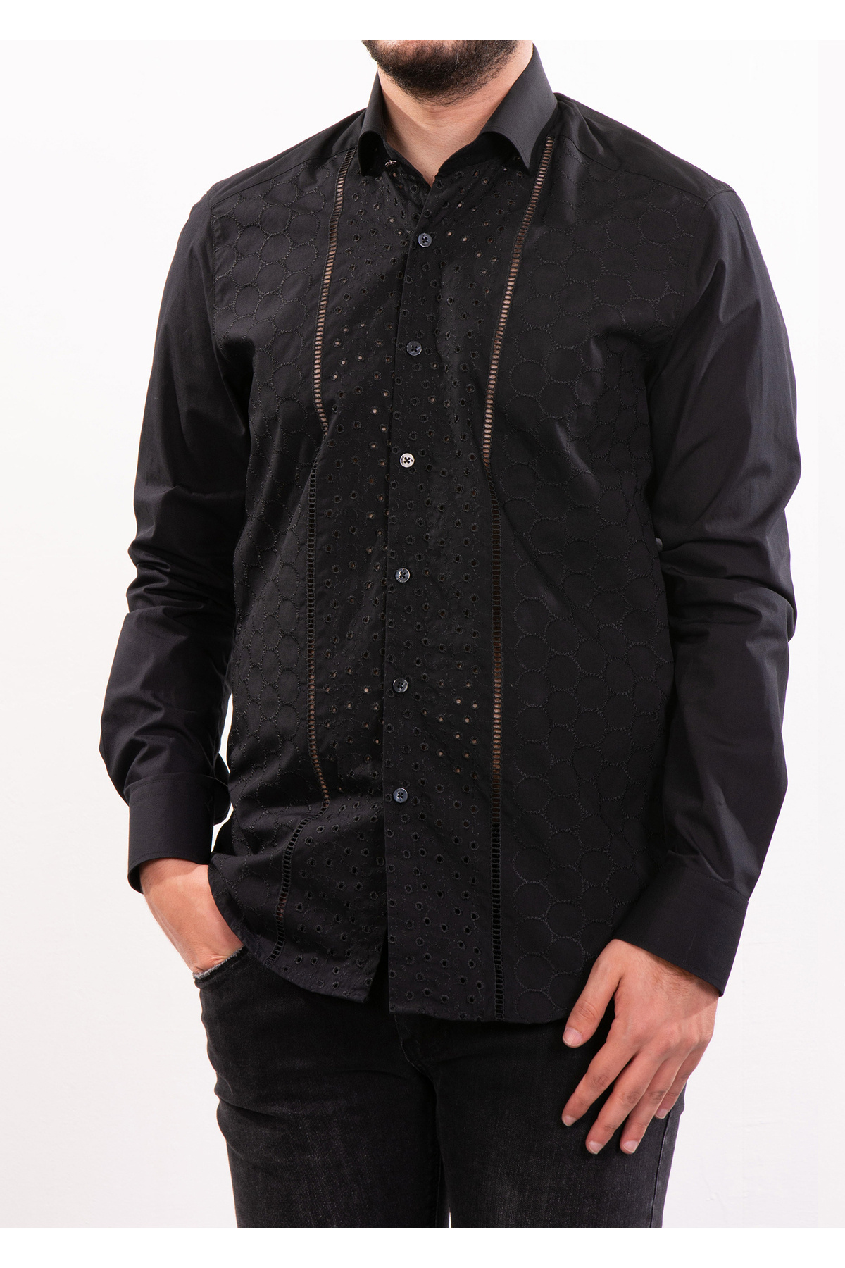 Transparan File Detaylı Beyaz Gömlek Transparan File Detaylı Beyaz Gömlek G-71693 02 4XL