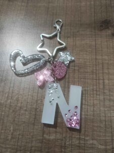 B Harf Gümüş Yıldız Halka VIP Taşlı Ekstra Figürlü Epoksi Harf Anahtarlık Hediyelik Anahtarlı Y_13