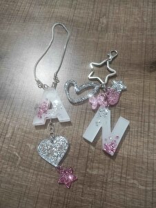 B Harf Gümüş Yıldız Halka VIP Taşlı Ekstra Figürlü Epoksi Harf Anahtarlık Hediyelik Anahtarlı