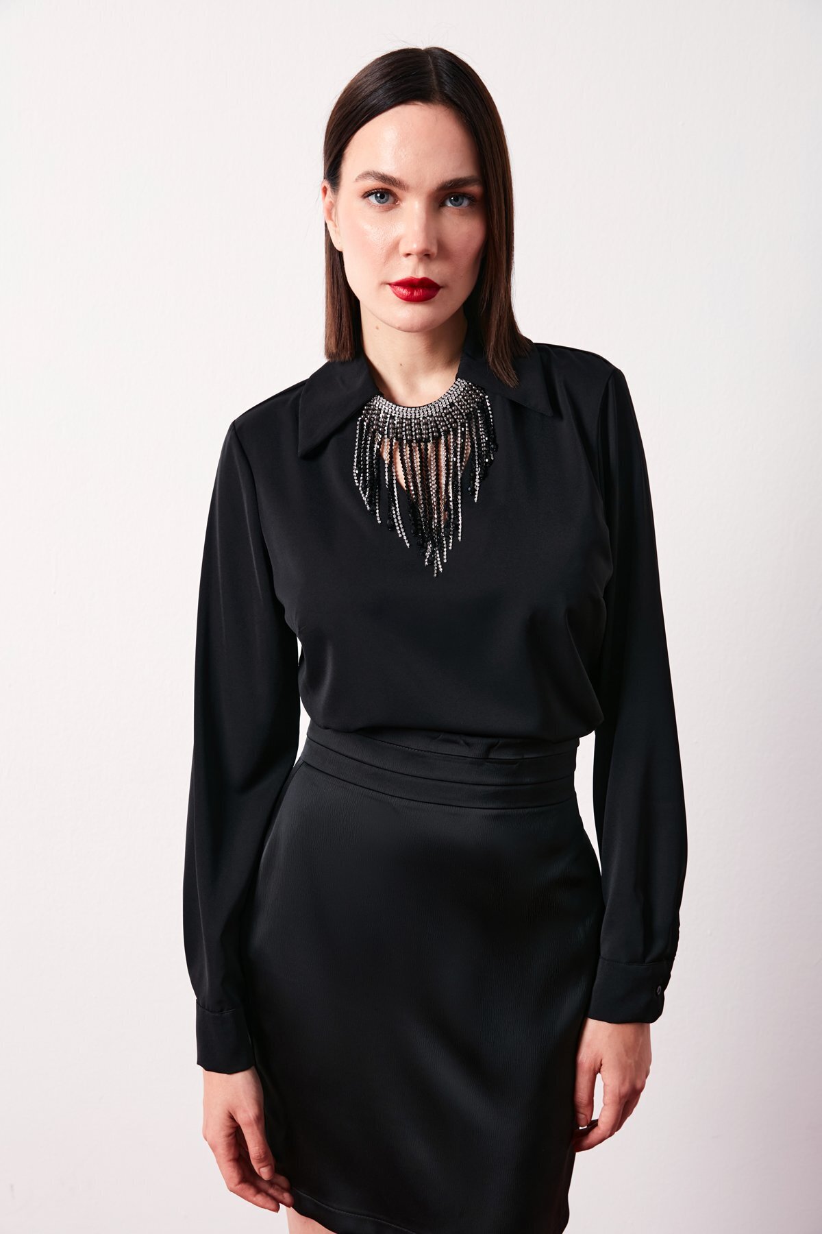 Kolyeli Salaş Bluz - SİYAH Kolyeli Salaş Bluz - SİYAH STN139KBL1414 42