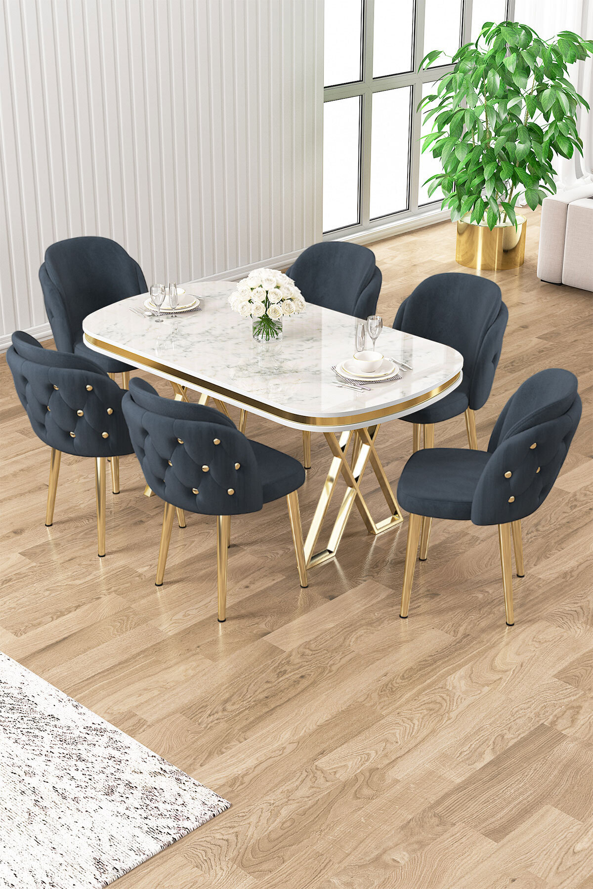 Ela Serisi Lak Panel Beyaz Mermer Desen Gold Ayak Mutfak Masa Takımı 6 Cappucino Sandalye Ela Serisi Lak Panel Beyaz Mermer Desen Gold Ayak Mutfak Masa Takımı 6 Cappucino Sandalye 24ELABYZMR06GLD تک سایز