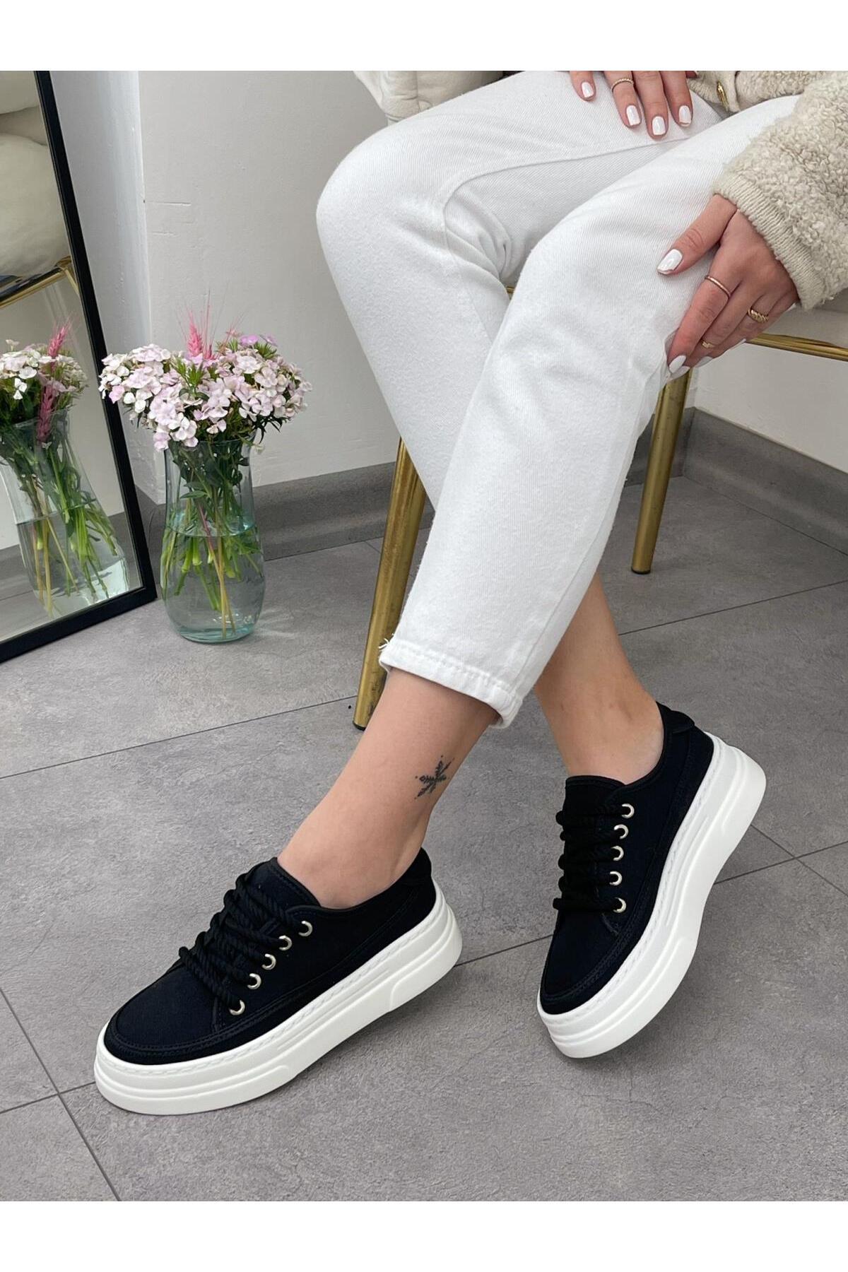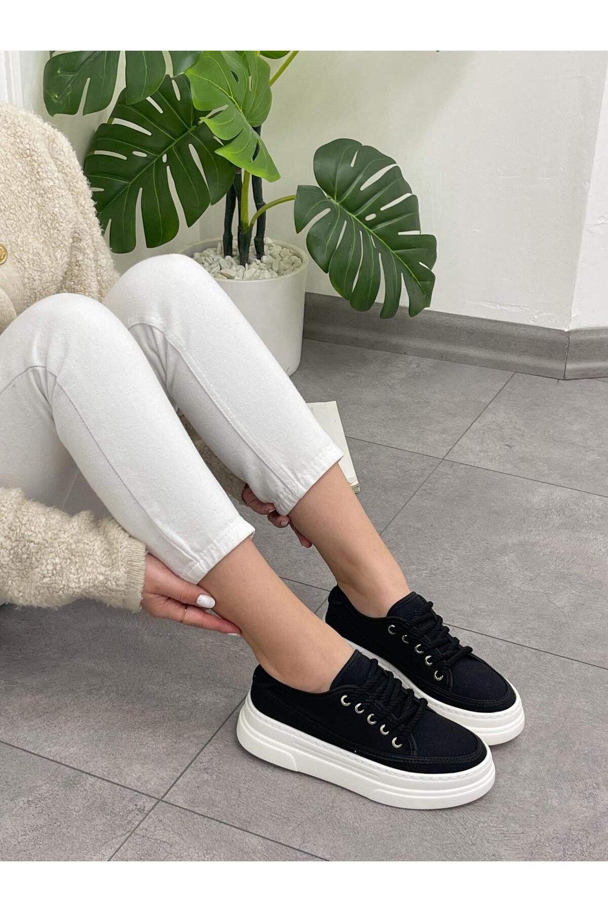 Siyah Keten (Werner) Bağcıklı Kadın Sneakers Siyah Keten (Werner) Bağcıklı Kadın Sneakers ERV2601 40