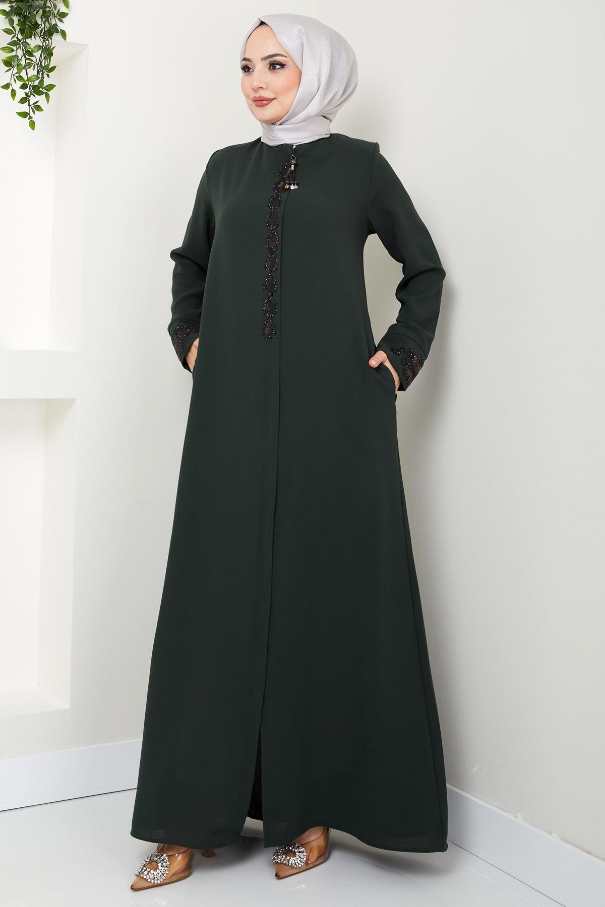 Damla Taş Detaylı Ferace Haki HM2435 Damla Taş Detaylı Ferace Haki HM2435 52