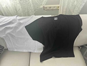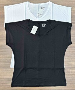 Kadın T-shirt V Yaka Basic Beyaz Siyah 2'li Renk Kadın T-shirt V Yaka Basic Beyaz Siyah 2'li Renk SGFHYM85662 3XL