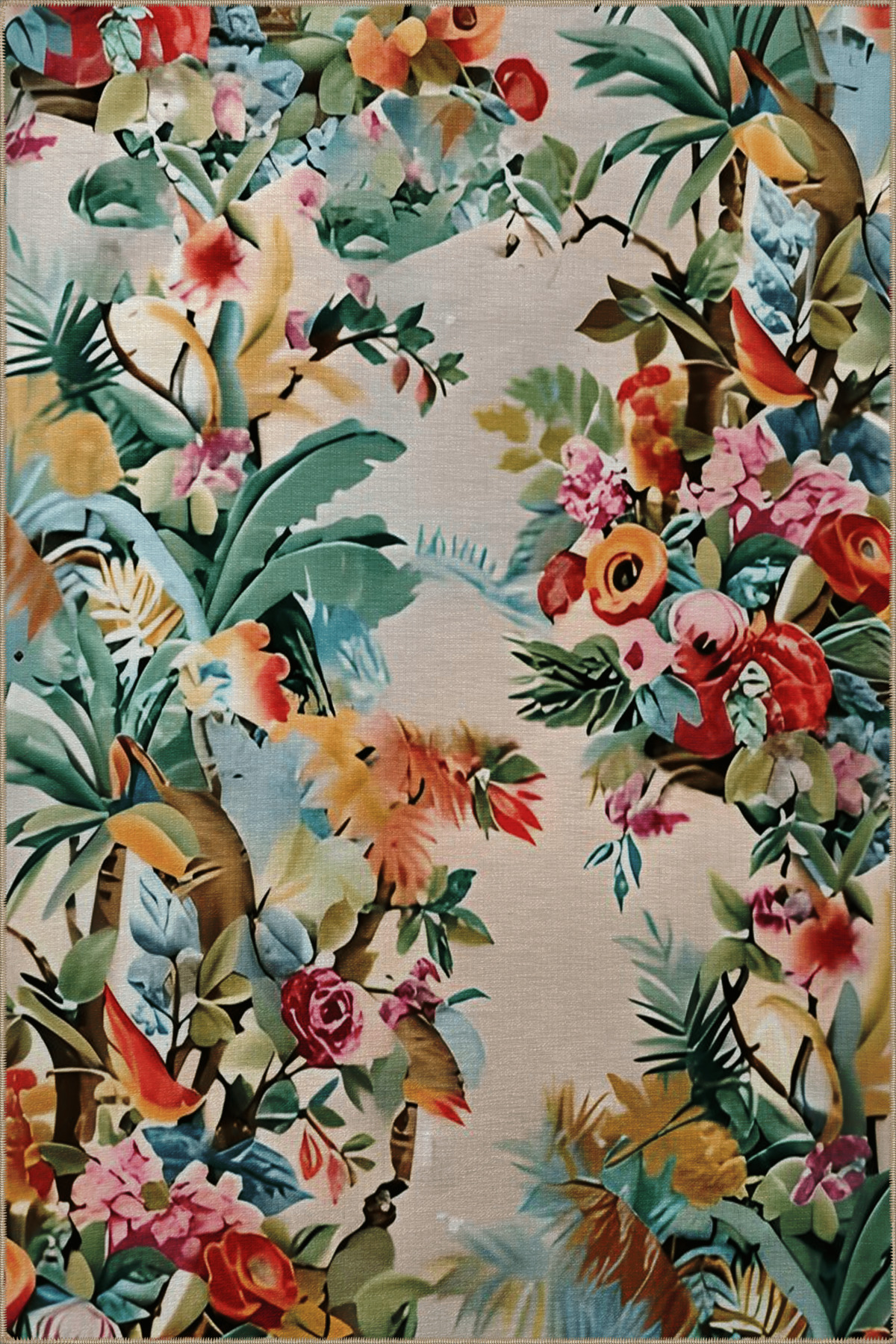 Minimal Floral Desen Yıkanabilir Kaymaz Taban Leke Tutmaz Çocuk Odası Halısı Minimal Floral Desen Yıkanabilir Kaymaz Taban Leke Tutmaz Çocuk Odası Halısı PNHS16 160 x 230