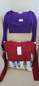 Kadın Uzun Kol Kare Yaka Crop Bluz 60251250 Kadın Uzun Kol Kare Yaka Crop Bluz 60251250 XL