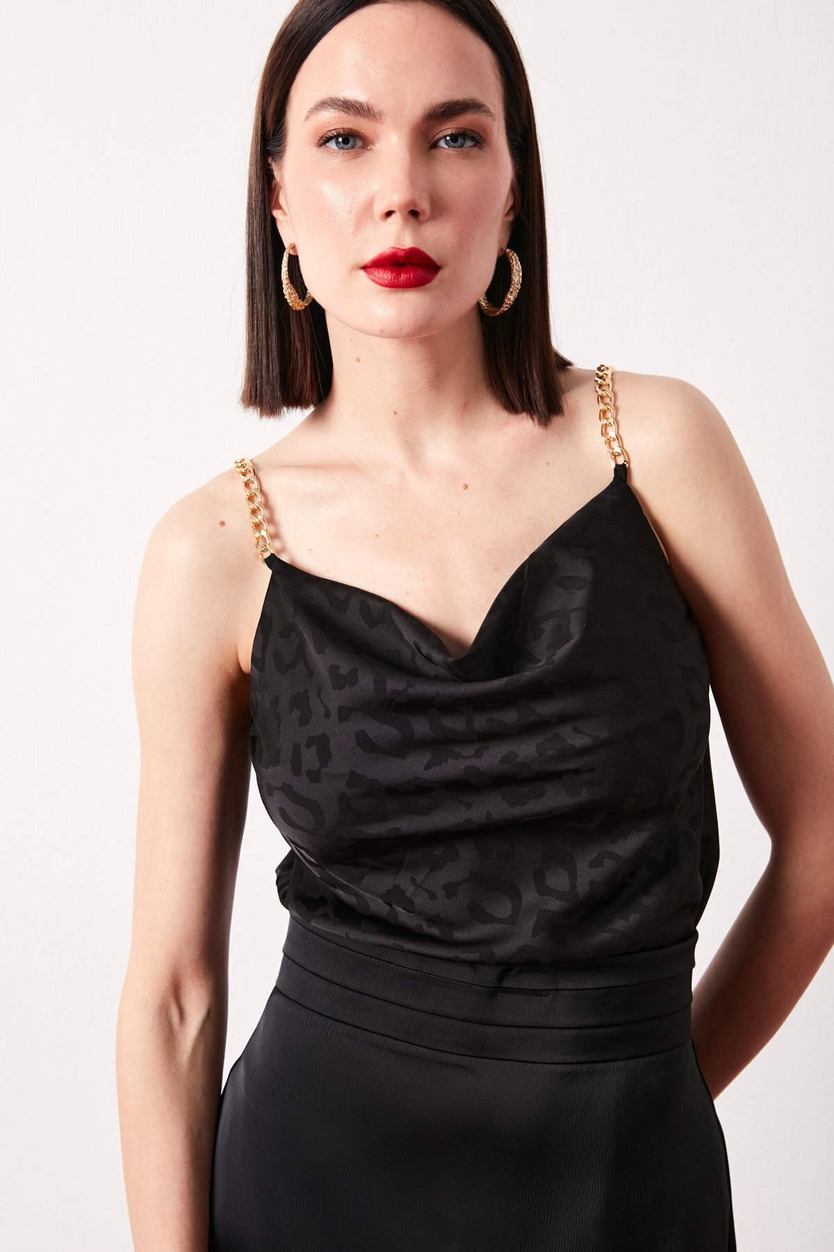 Zincir Askılı Saten Bluz - SİYAH Zincir Askılı Saten Bluz - SİYAH STN139KBL1423 42