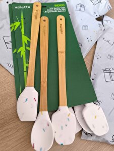 Indigo 3'lü Beyaz Renkli Noktalı Bambu Silikon Spatula Seti Uzun 26 cm Indigo 3'lü Beyaz Renkli Noktalı Bambu Silikon Spatula Seti Uzun 26 cm VS-505MS تک سایز