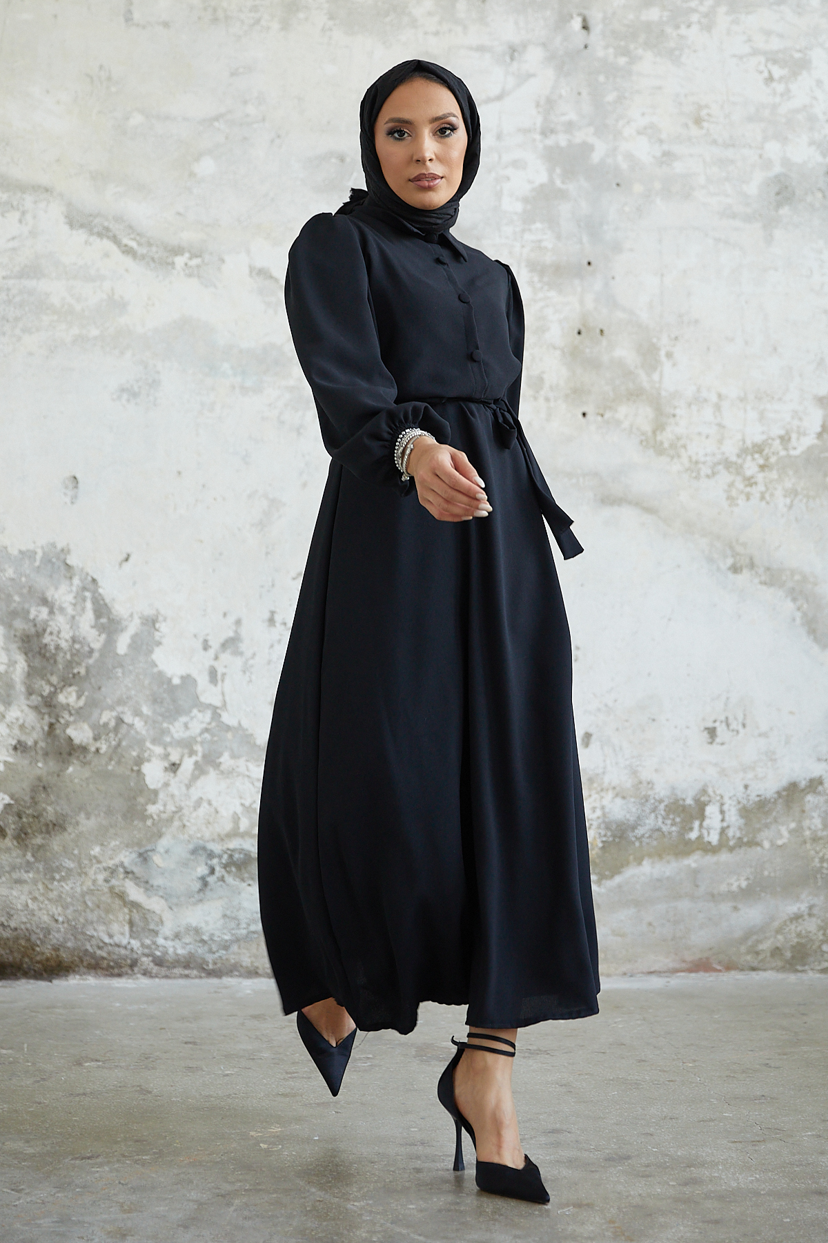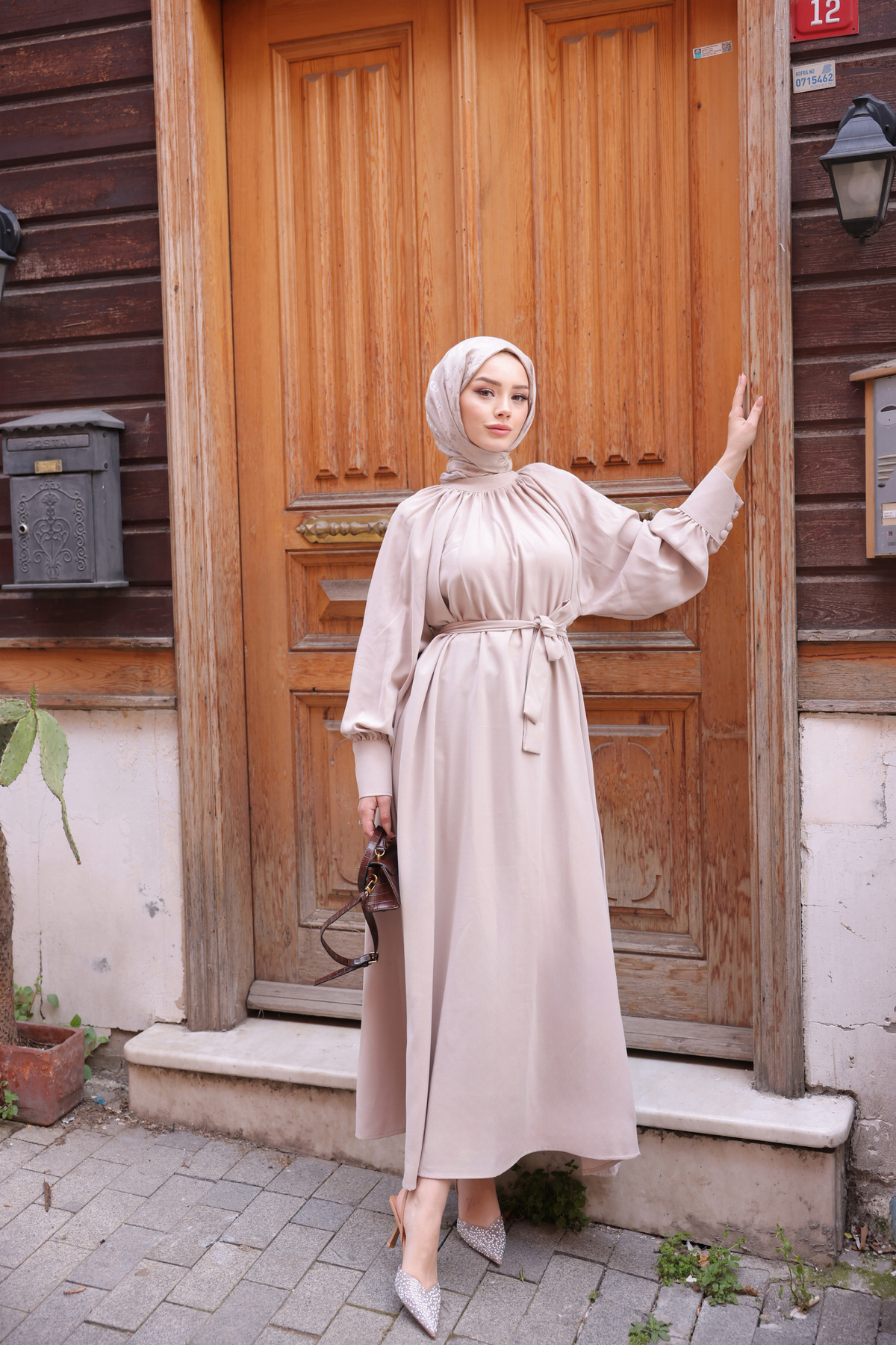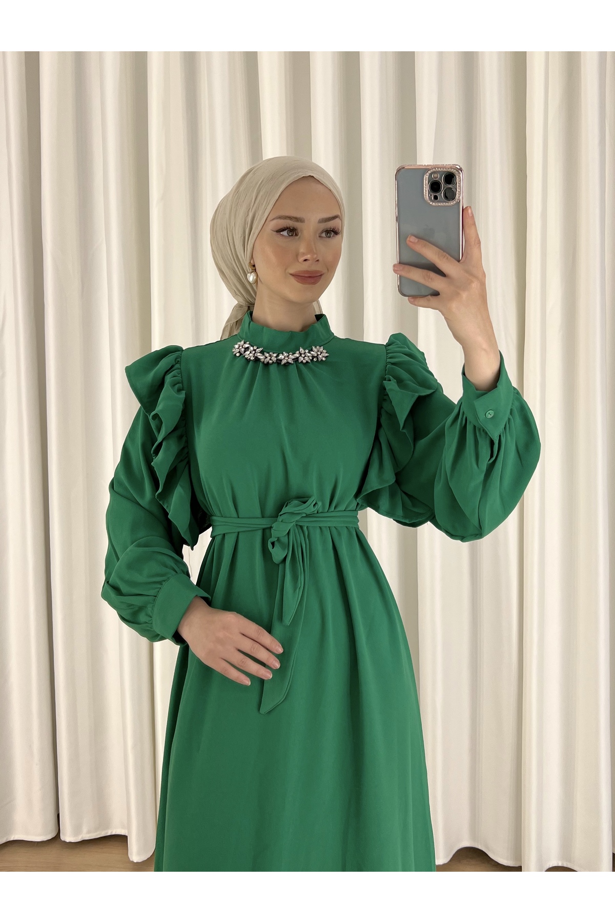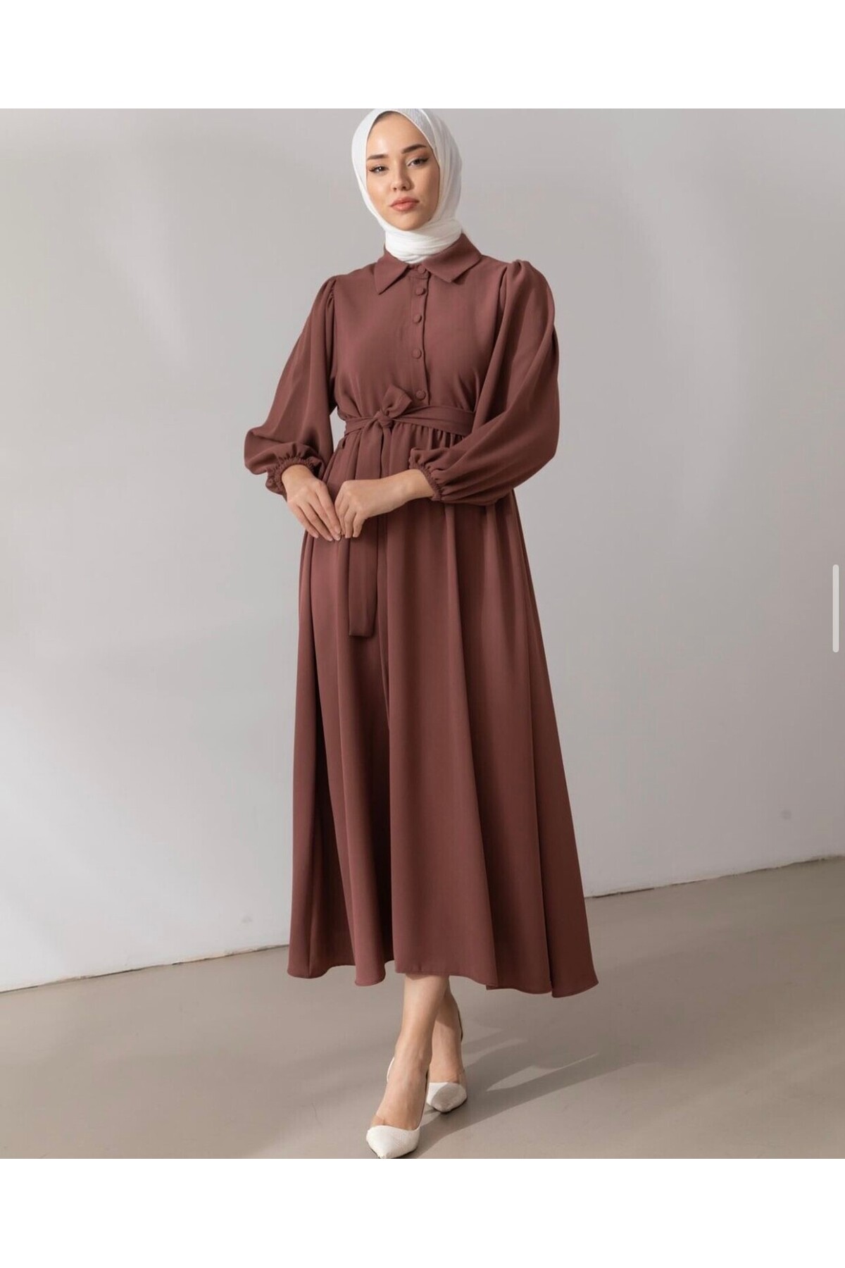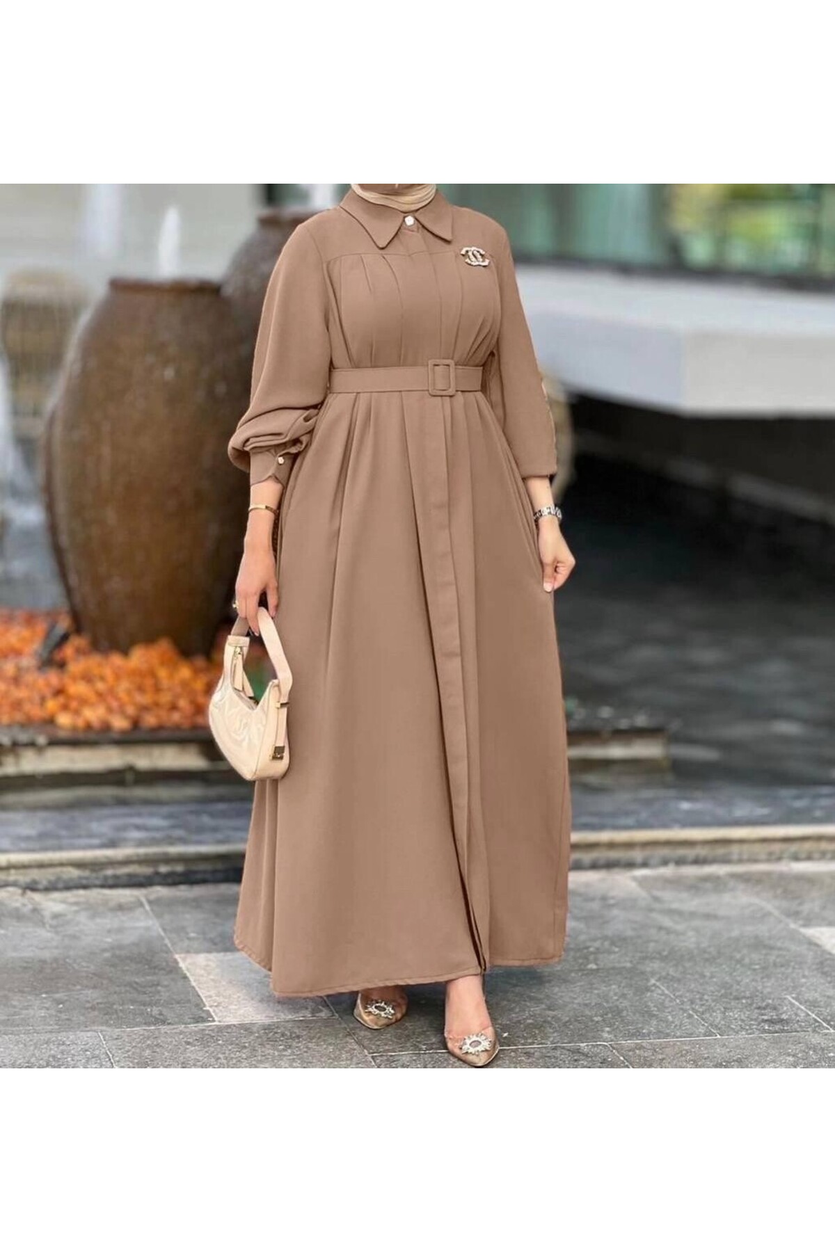 Taş Detaylı Tesettür Elbise Kahverengi Taş Detaylı Tesettür Elbise Kahverengi 792246-510Y12003986 48