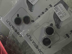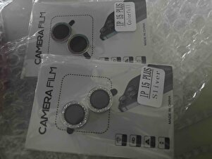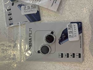 iPhone 15/15 Plus için Kamera Lens Koruyucu Simli Metal Kristal Temperli Cam Lens Kapağı 15SimliLens