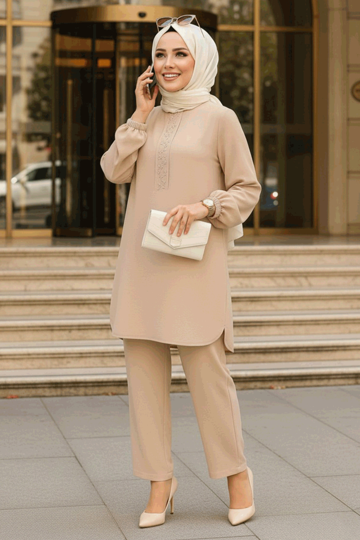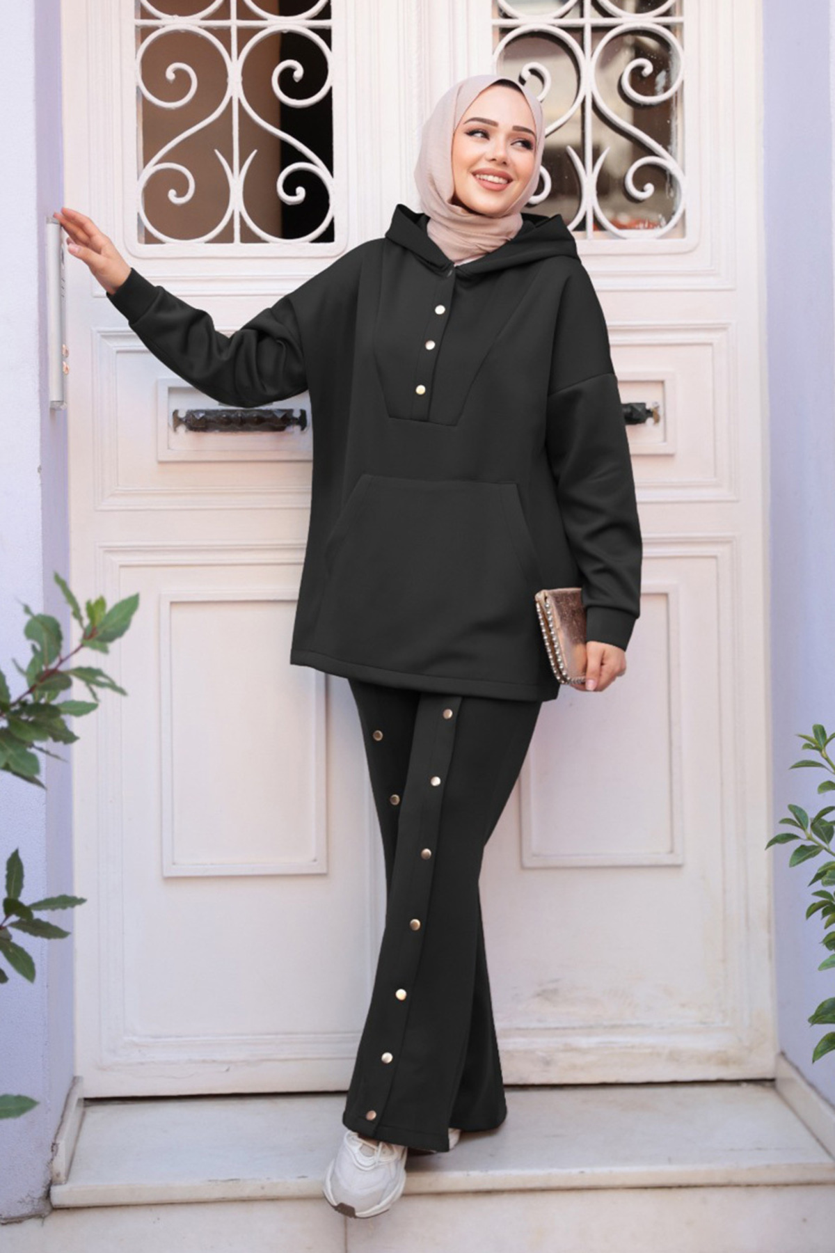 Düğmeli Yağ Yeşili Tesettür İkili Takım 67751YY Düğmeli Yağ Yeşili Tesettür İkili Takım 67751YY FXY-67751 44