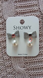 Kadın Fiyonk İncili Çelik Gümüş Küpe Kadın Fiyonk İncili Çelik Gümüş Küpe mm75655mm تک سایز