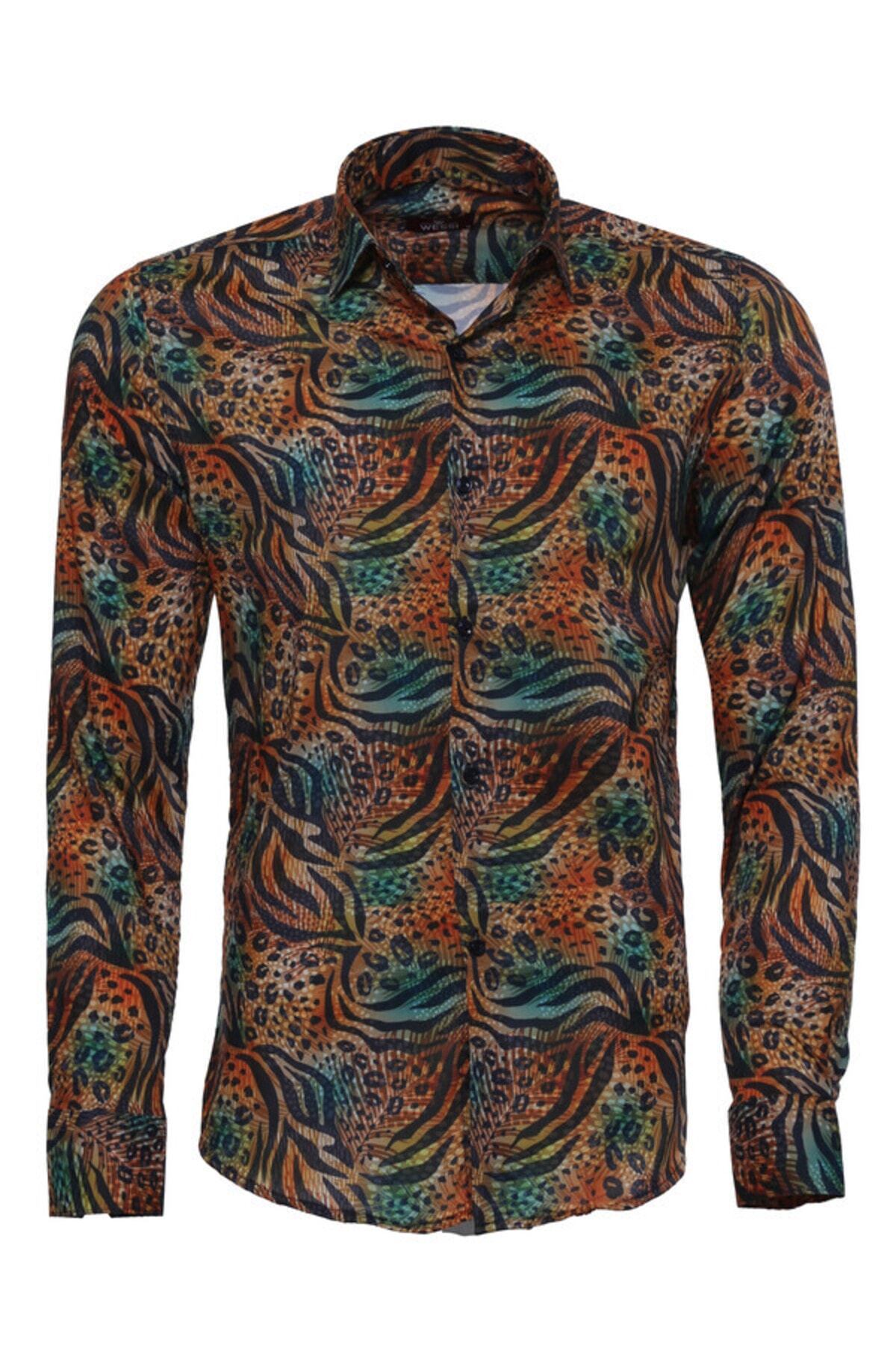 Çiçek Desenli Kahverengi Slim Fit Gömlek - Wessi Çiçek Desenli Kahverengi Slim Fit Gömlek - Wessi G-710-500500S 3XL