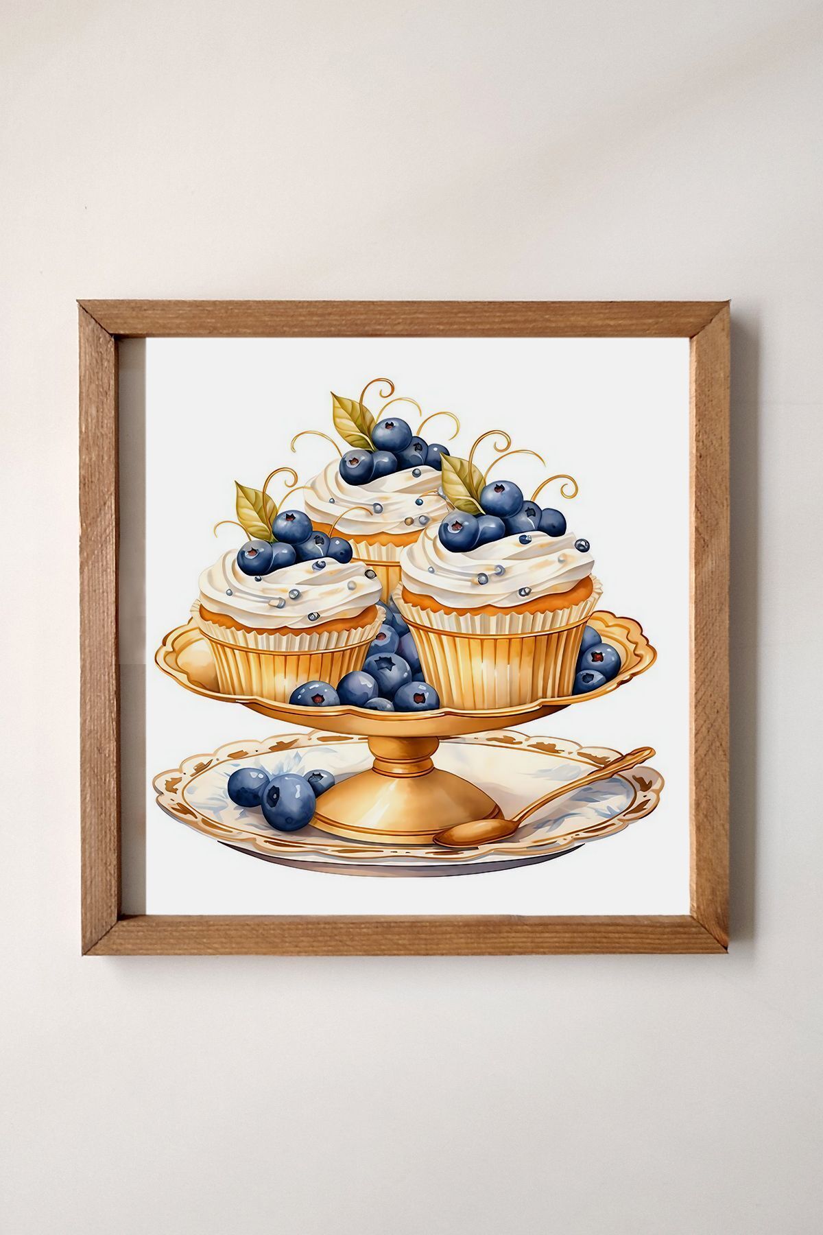 Ahşap Çerçeveli, Sulu Boya Efektli, Gold Detaylı Muffin Tablosu Ahşap Çerçeveli, Sulu Boya Efektli, Gold Detaylı Muffin Tablosu TL-UVÇER-208 30 x 30