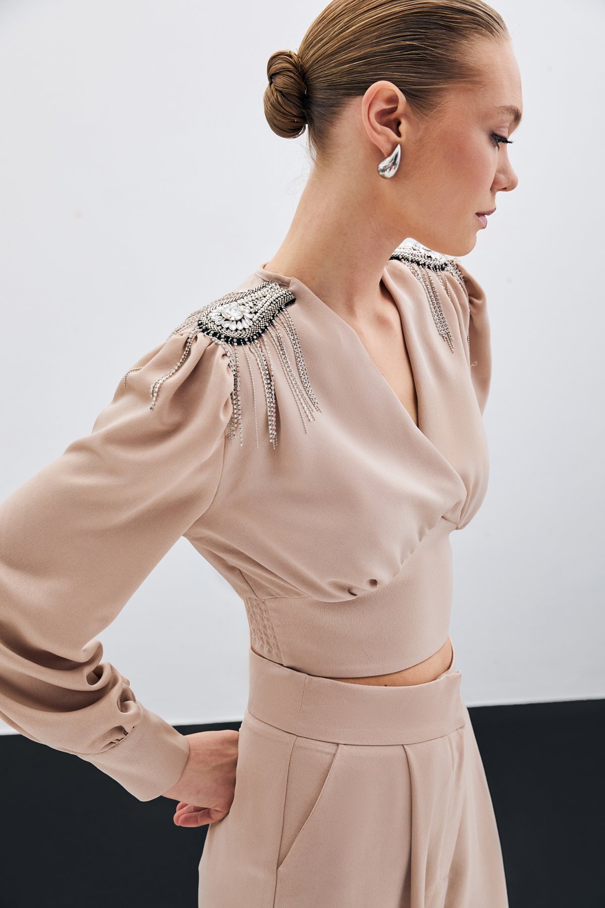 Desenli Kruvaze Saten Bluz - Kahve Desenli Kruvaze Saten Bluz - Kahve STN139KBL1418 42