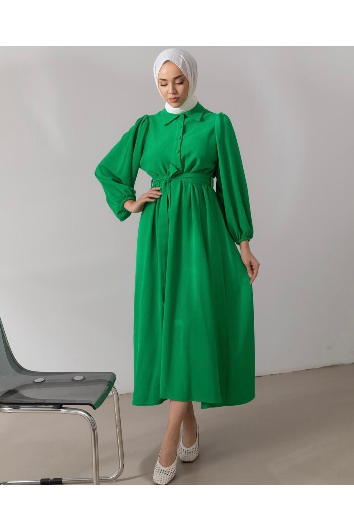 Düğme Detaylı Tesettür Elbise Bej Düğme Detaylı Tesettür Elbise Bej 792246-510M12009559 46