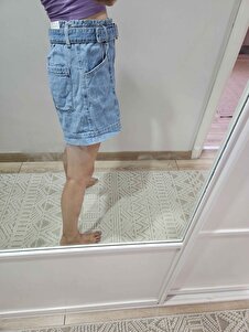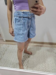 Kemerli denim şort Kemerli denim şort 77050275 XL