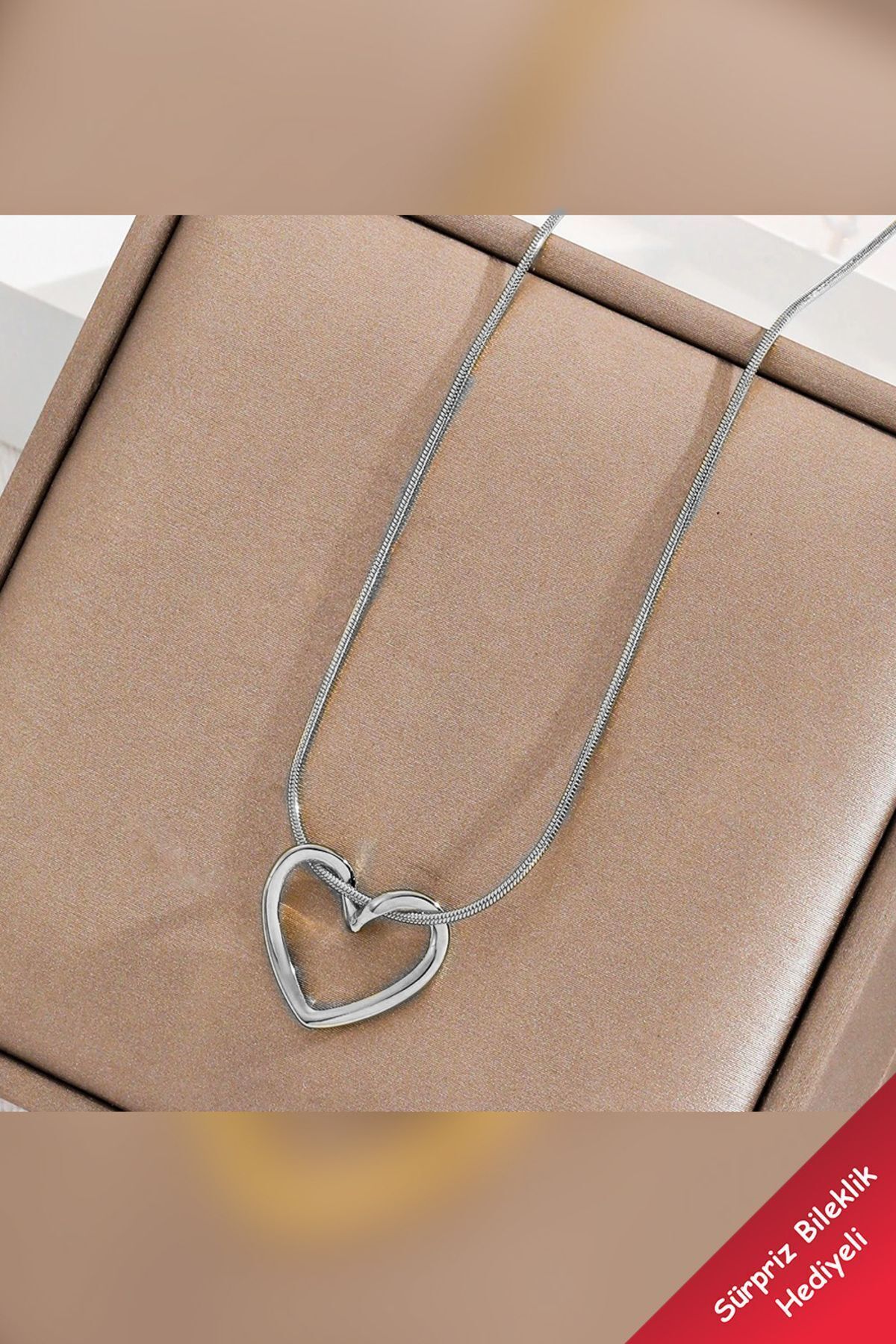 İçi boş kalp çelik silver aşk kolye İçi boş kalp çelik silver aşk kolye takı018737 42 cm