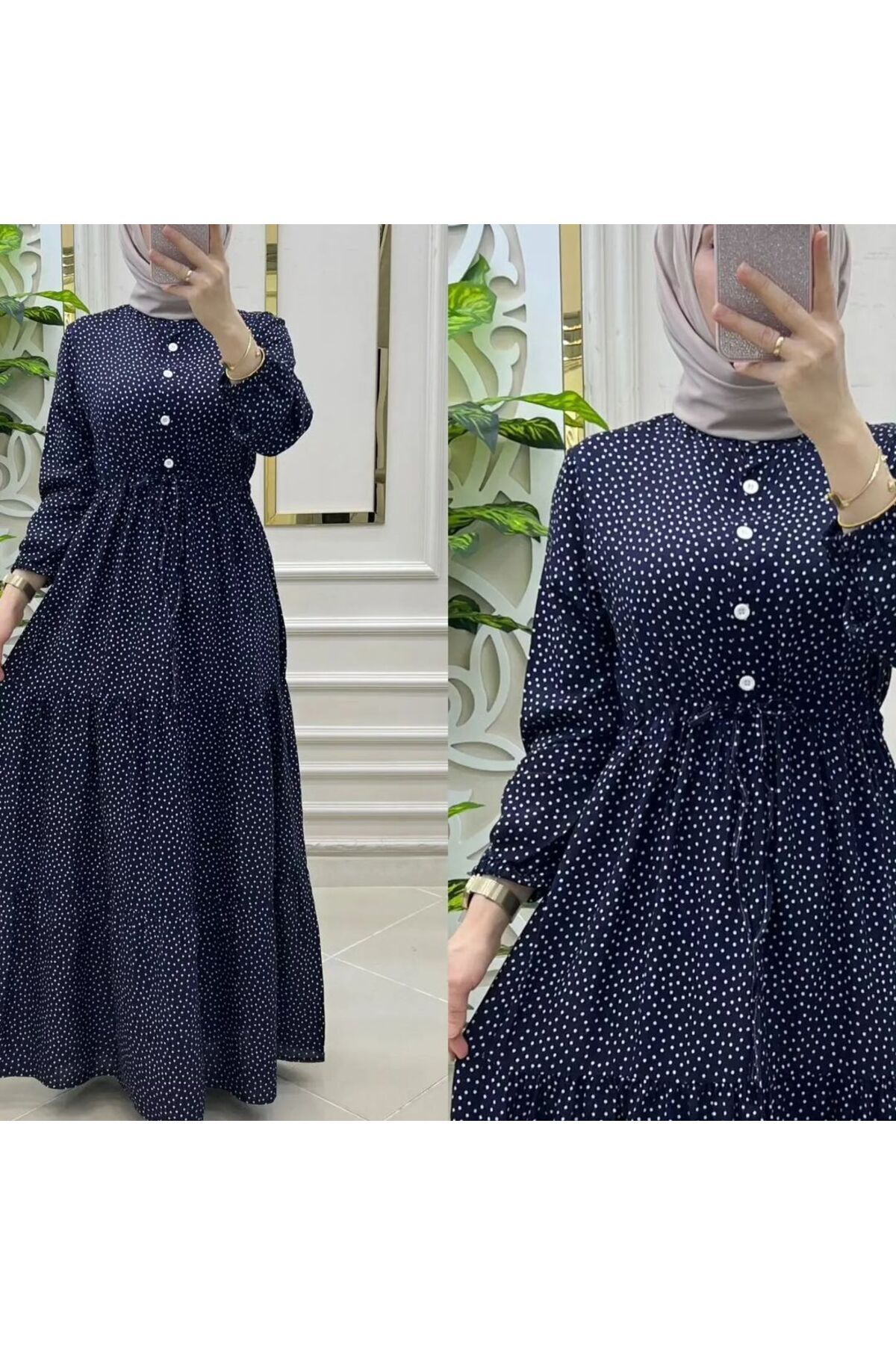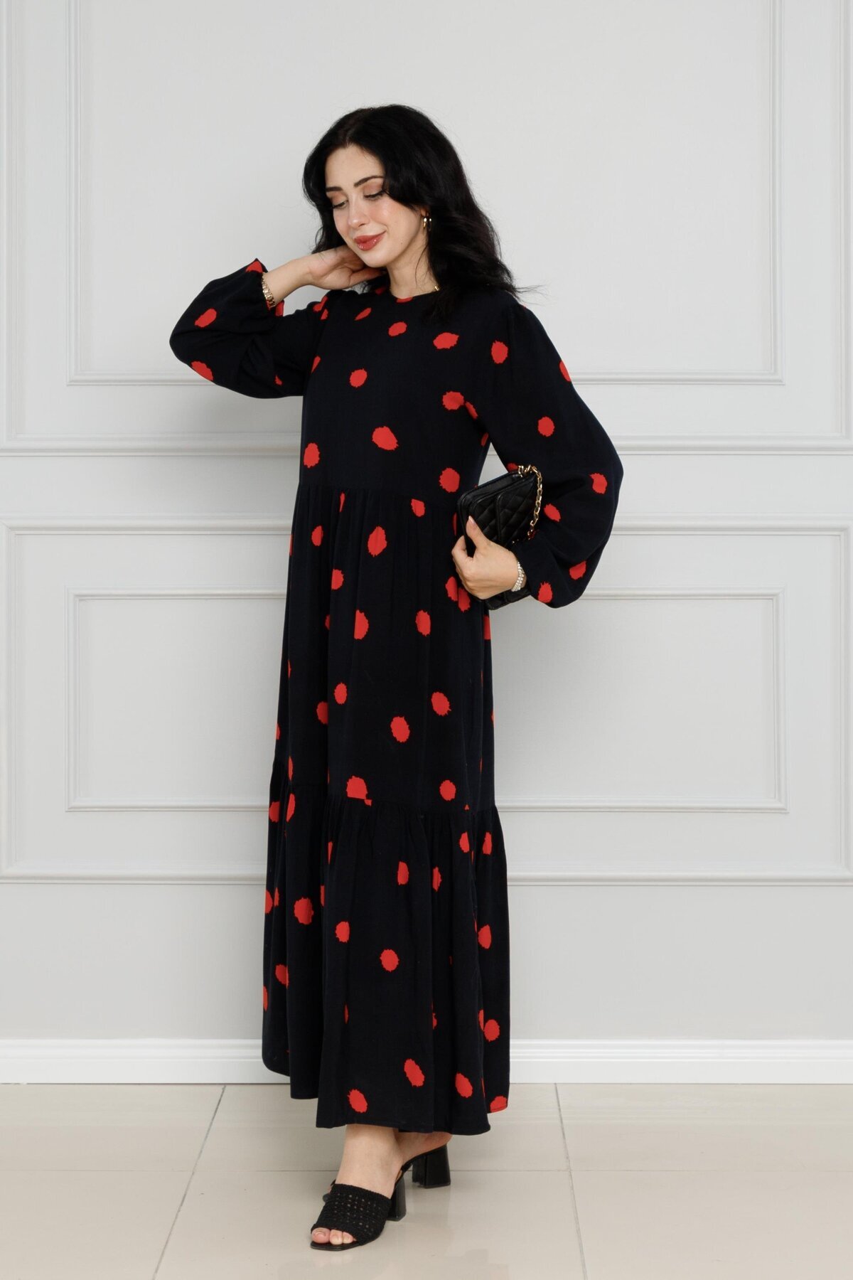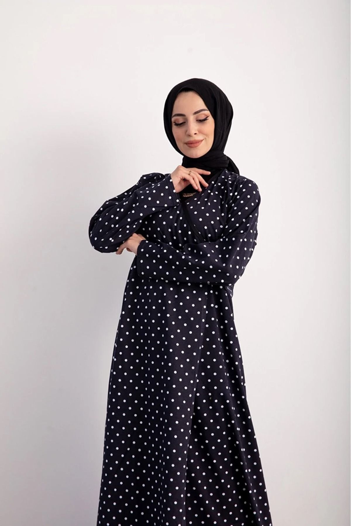 Puantiye Desenli Viskon Elbise SİYAH Puantiye Desenli Viskon Elbise SİYAH 0275SGS 52