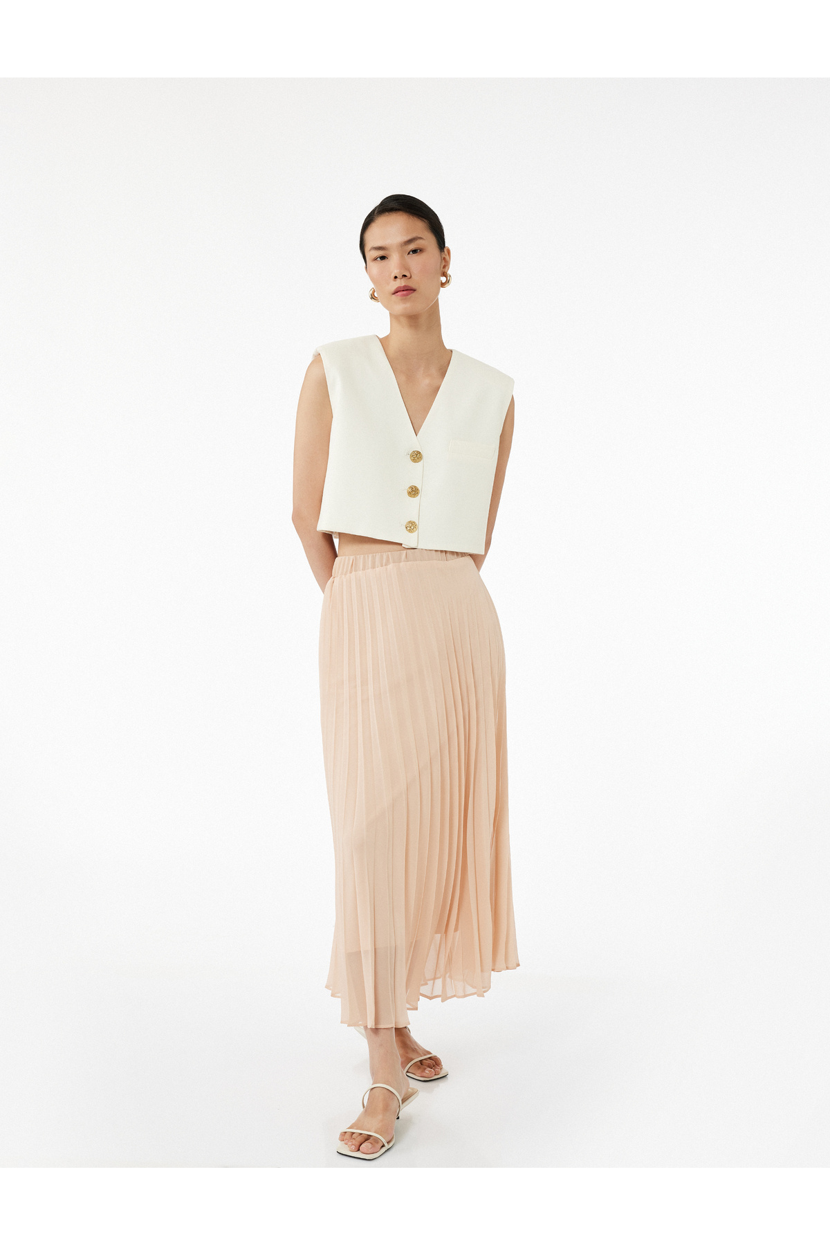 Midi Tül İnce Pliseli Etek Astarlı Yüksek Bel Midi Tül İnce Pliseli Etek Astarlı Yüksek Bel 4SAK70126UW 42