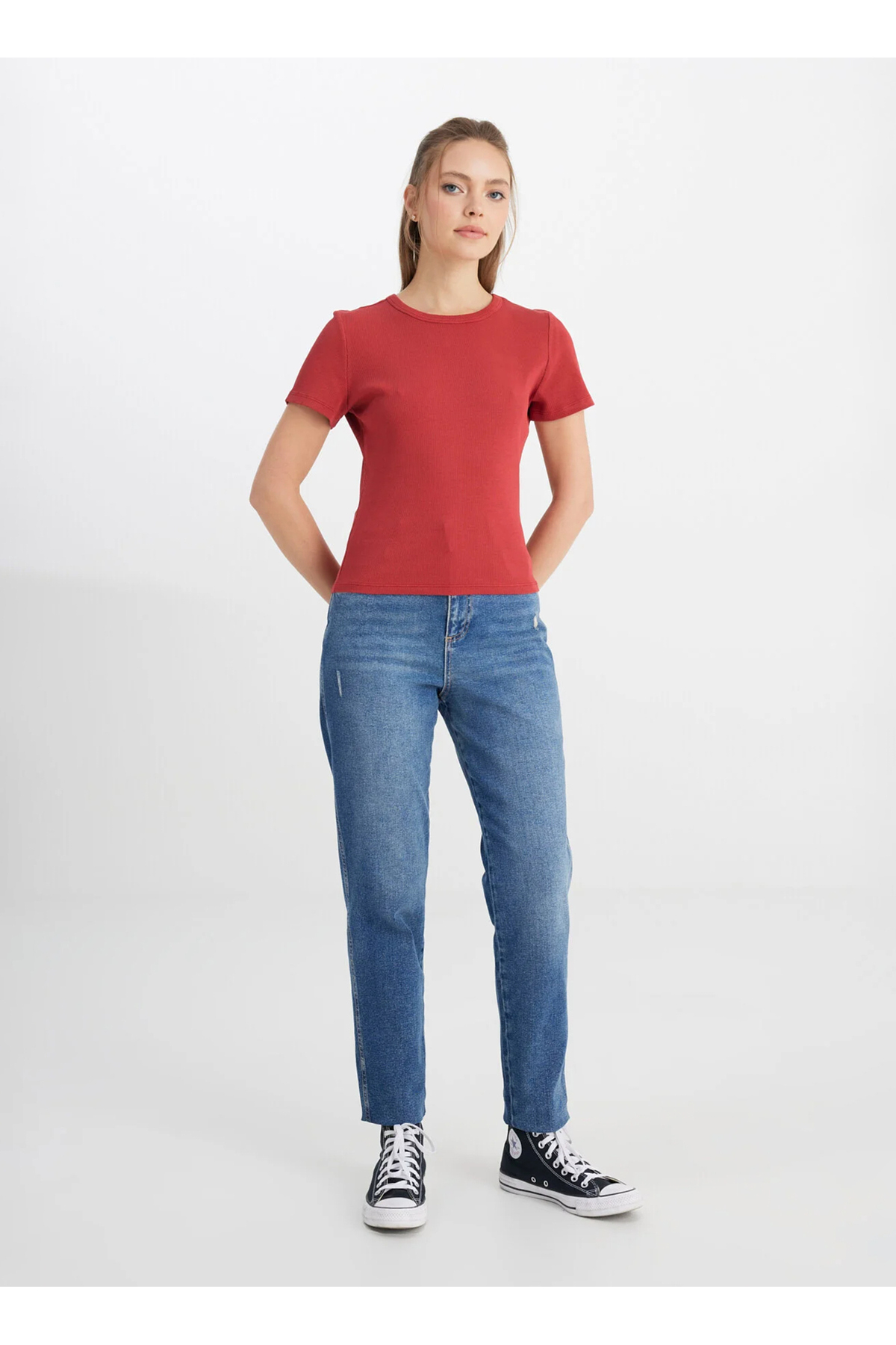 Slim Fit Dar Kesim Bisiklet Yaka Kırmızı Tişört Slim Fit Dar Kesim Bisiklet Yaka Kırmızı Tişört W241600 L