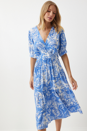 Kadın Mavi Anvelop Yaka Çiçekli Yazlık Viskon Elbise RV00128 Kadın Mavi Anvelop Yaka Çiçekli Yazlık Viskon Elbise RV00128 40