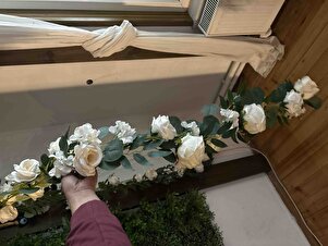 Yapay Çiçek Sarkan Ve Dolanan Beyaz Krem Şakayık Gül Okaliptus Yapay Sarmaşık Masa Çiçeği Yapay Çiçek Sarkan Ve Dolanan Beyaz Krem Şakayık Gül Okaliptus Yapay Sarmaşık Masa Çiçeği okaliptusgüllü تک سایز