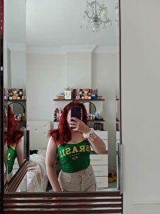 Yeşil Vintage Sarı Şeritli Brasil Askılı Crop Yeşil Vintage Sarı Şeritli Brasil Askılı Crop KHFT503 L