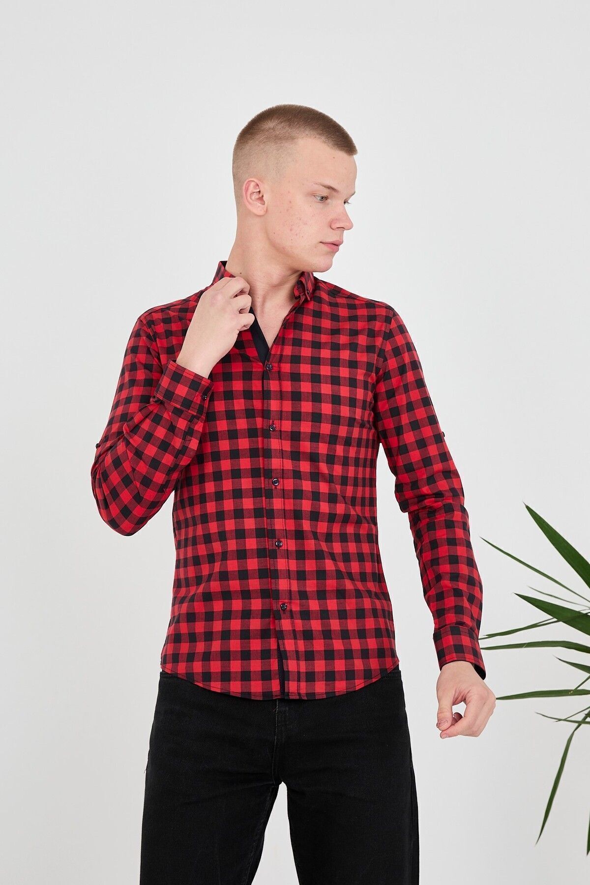 Damalı-ekose Siyah-kırmızı Slim Fit Pamuklu Esnek Düğmeli Yaka Erkek Gömlek Damalı-ekose Siyah-kırmızı Slim Fit Pamuklu Esnek Düğmeli Yaka Erkek Gömlek KÇKDML 2XL