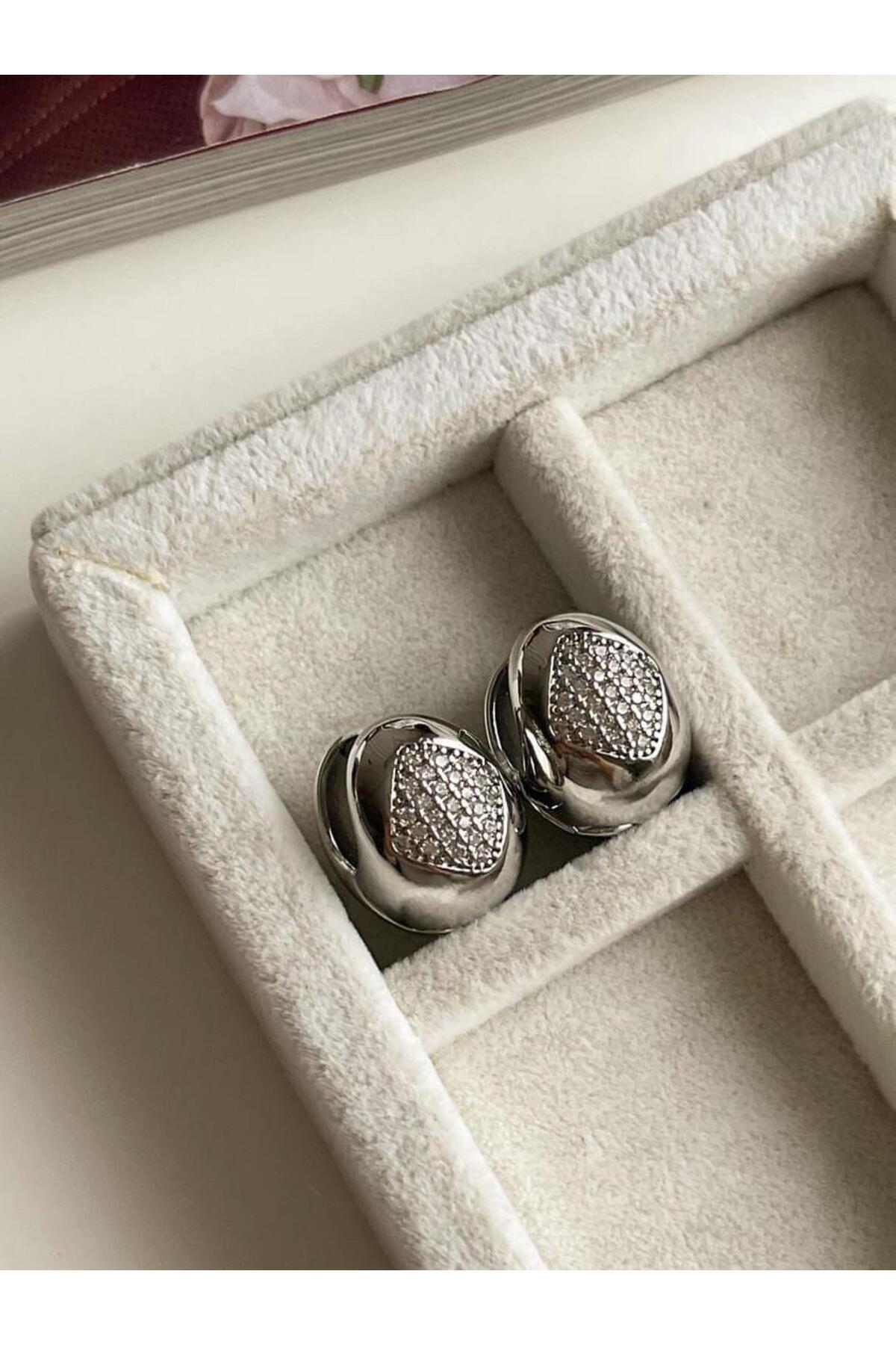 Özel Kaplama Gümüş Renk Zirkon Taşlı Bottega Vip Küpe (1.70 Cm) Özel Kaplama Gümüş Renk Zirkon Taşlı Bottega Vip Küpe (1.70 Cm) 20407393 0