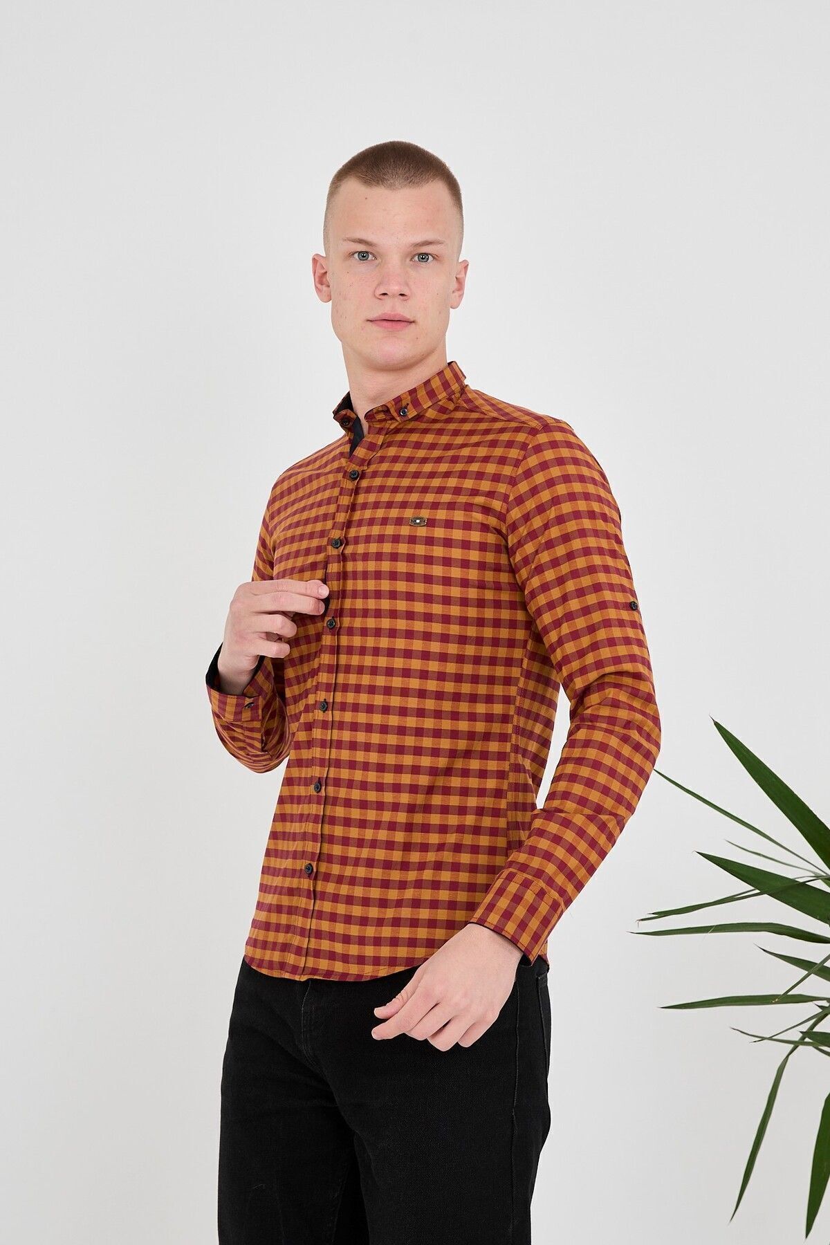 Damalı-ekose Hardal Slim Fit Pamuklu Esnek Düğmeli Yaka Erkek Gömlek Damalı-ekose Hardal Slim Fit Pamuklu Esnek Düğmeli Yaka Erkek Gömlek KÇKDML 2XL